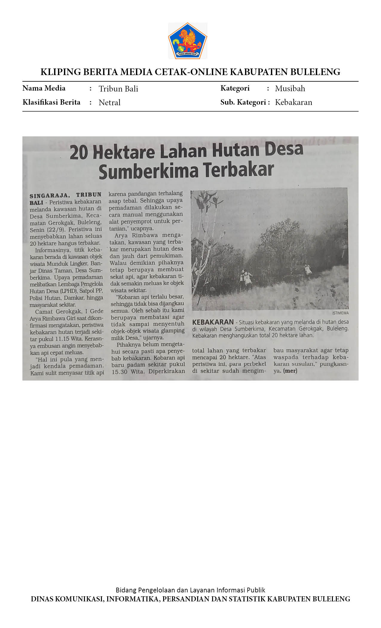 20 HEKTARE LAHAN HUTAN DESA SUMBERKIMA TERBAKAR