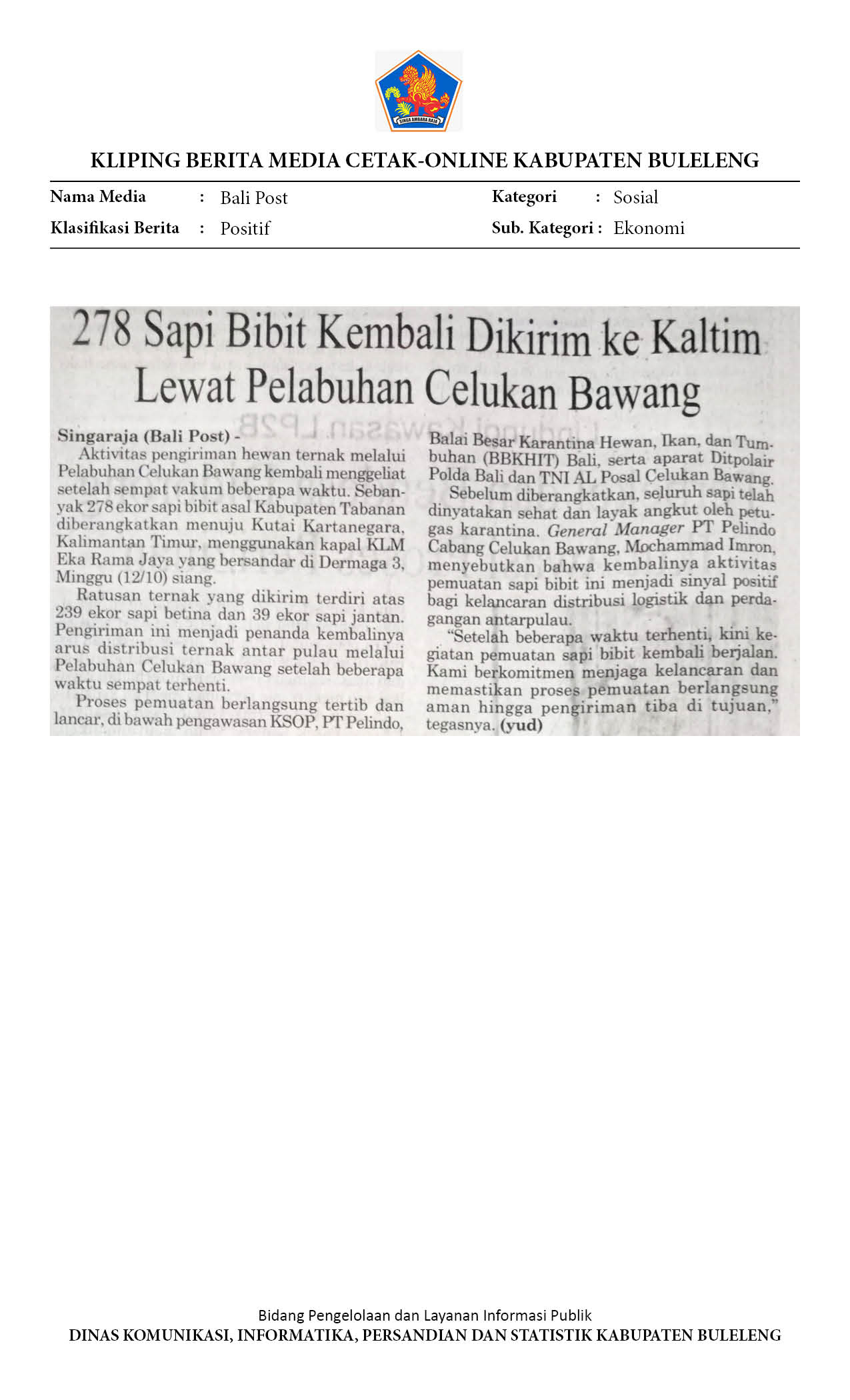 278 SAPI BIBIT KEMBALI DIKIRIM KE KALTIM LEWAT PELABUHAN CELUKAN BAWANG
