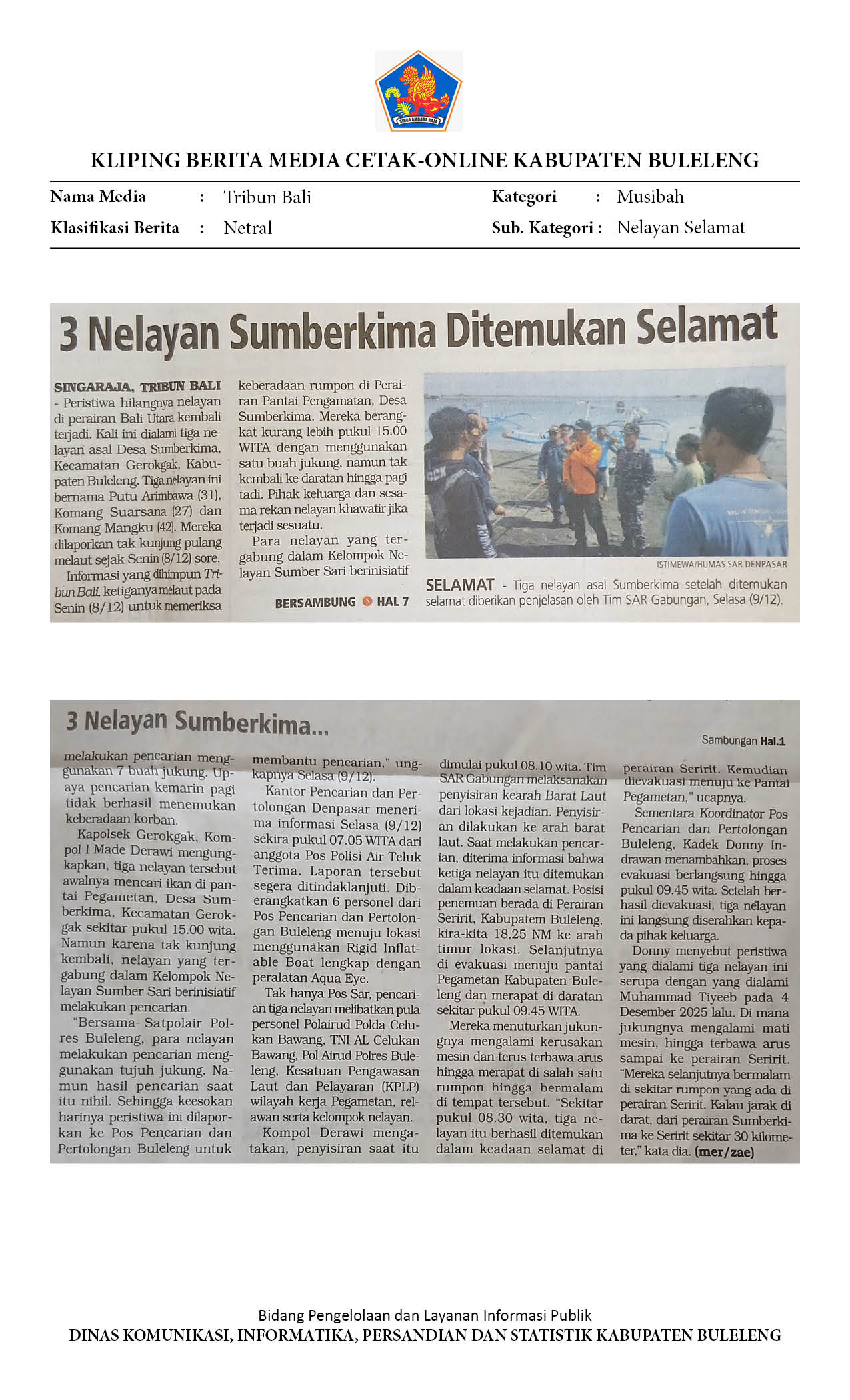 3 NELAYAN SUMBERKIMA DITEMUKAN SELAMAT
