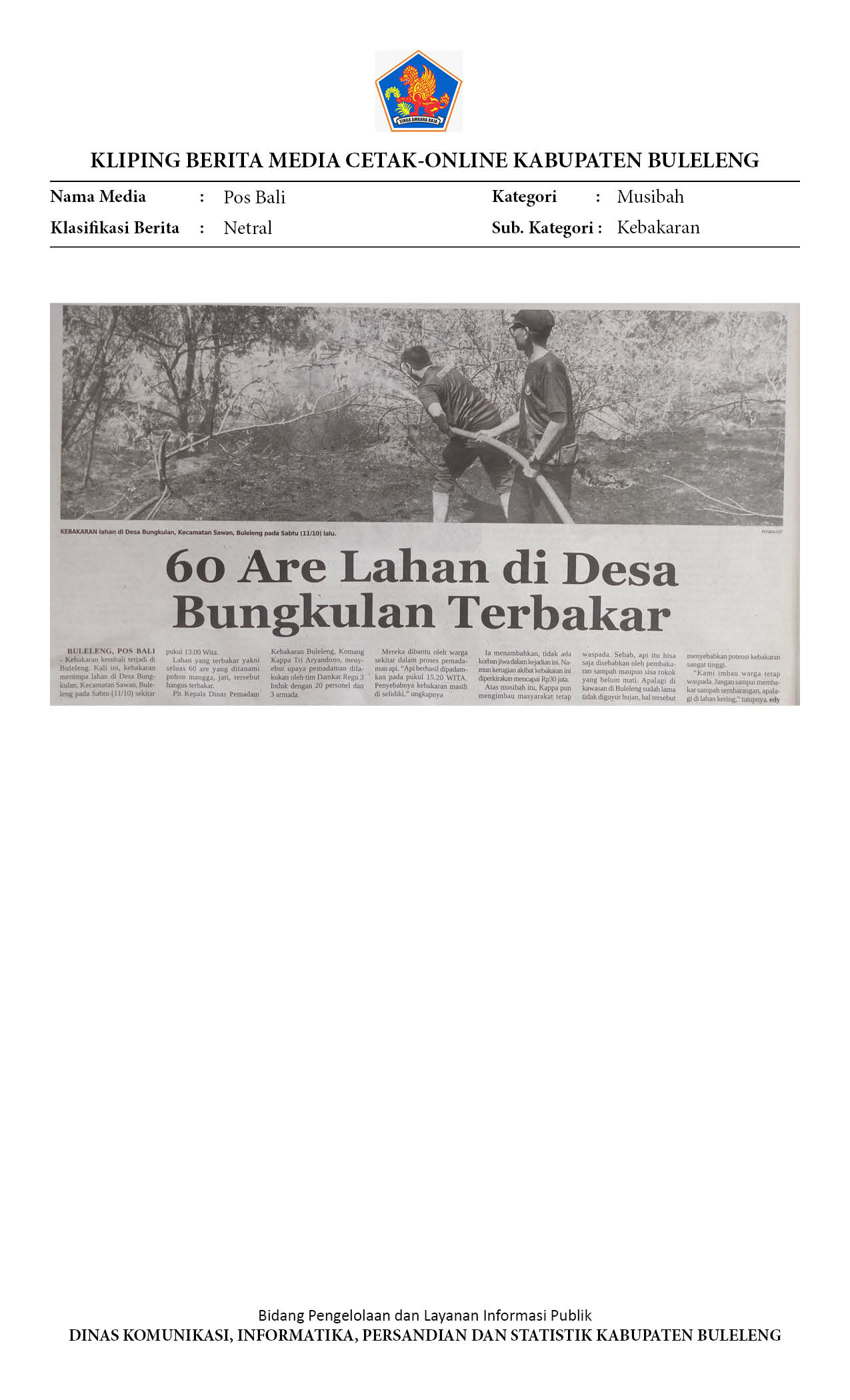 60 ARE LAHAN DI DESA BUNGKULAN TERBAKAR