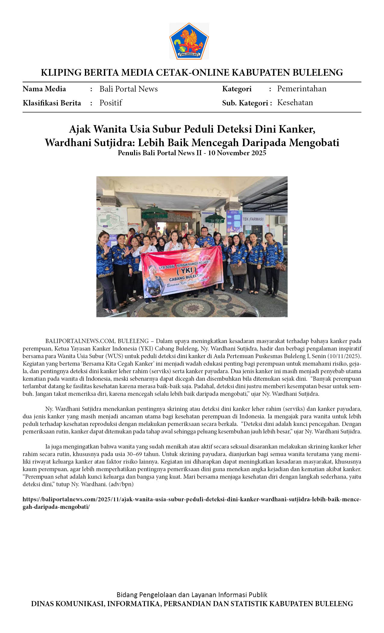 AJAK WANITA USIA SUBUR PEDULI DETEKSI DINI KANKER, WARDHANI SUTJIDRA: LEBIH BAIK MENCEGAH DARIPADA MENGOBATI
