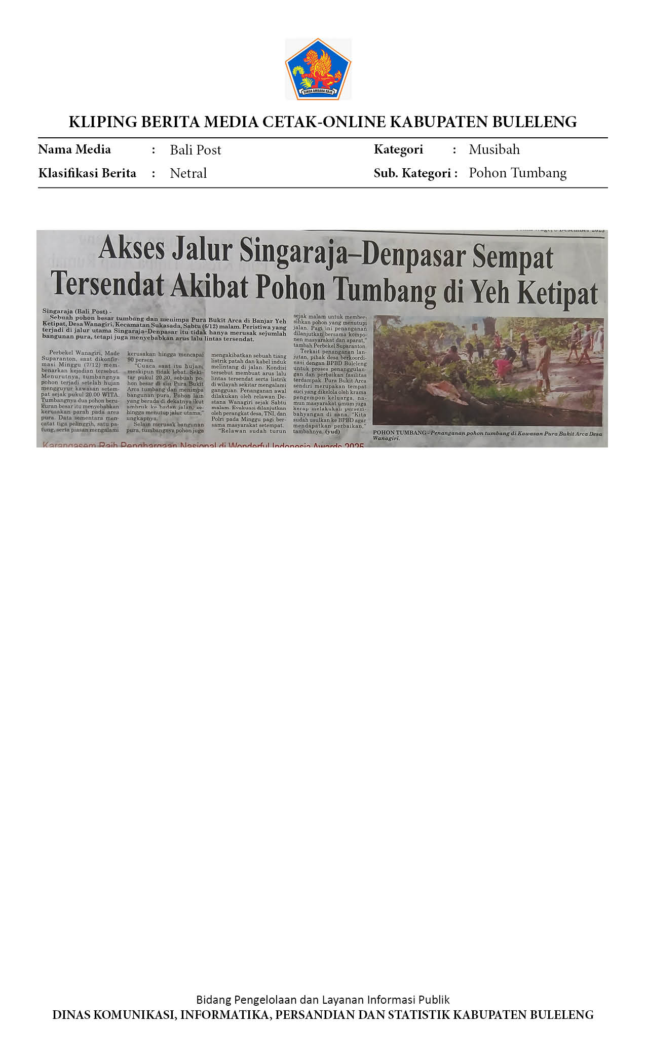 Akses Jalur Singaraja-Denpasar Sempat Tersendat Akubat Pohon Tumbang di Yeh Ketipat