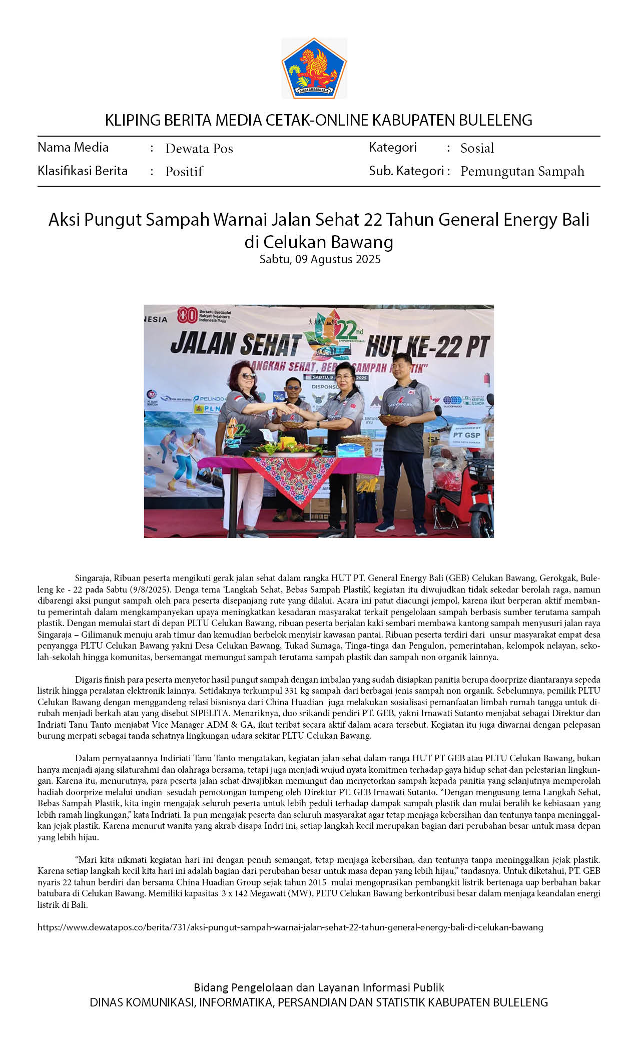 Aksi Pungut Sampah Warnai Jalan Sehat 22 Tahun General Energy Bali di Celukan Bawang