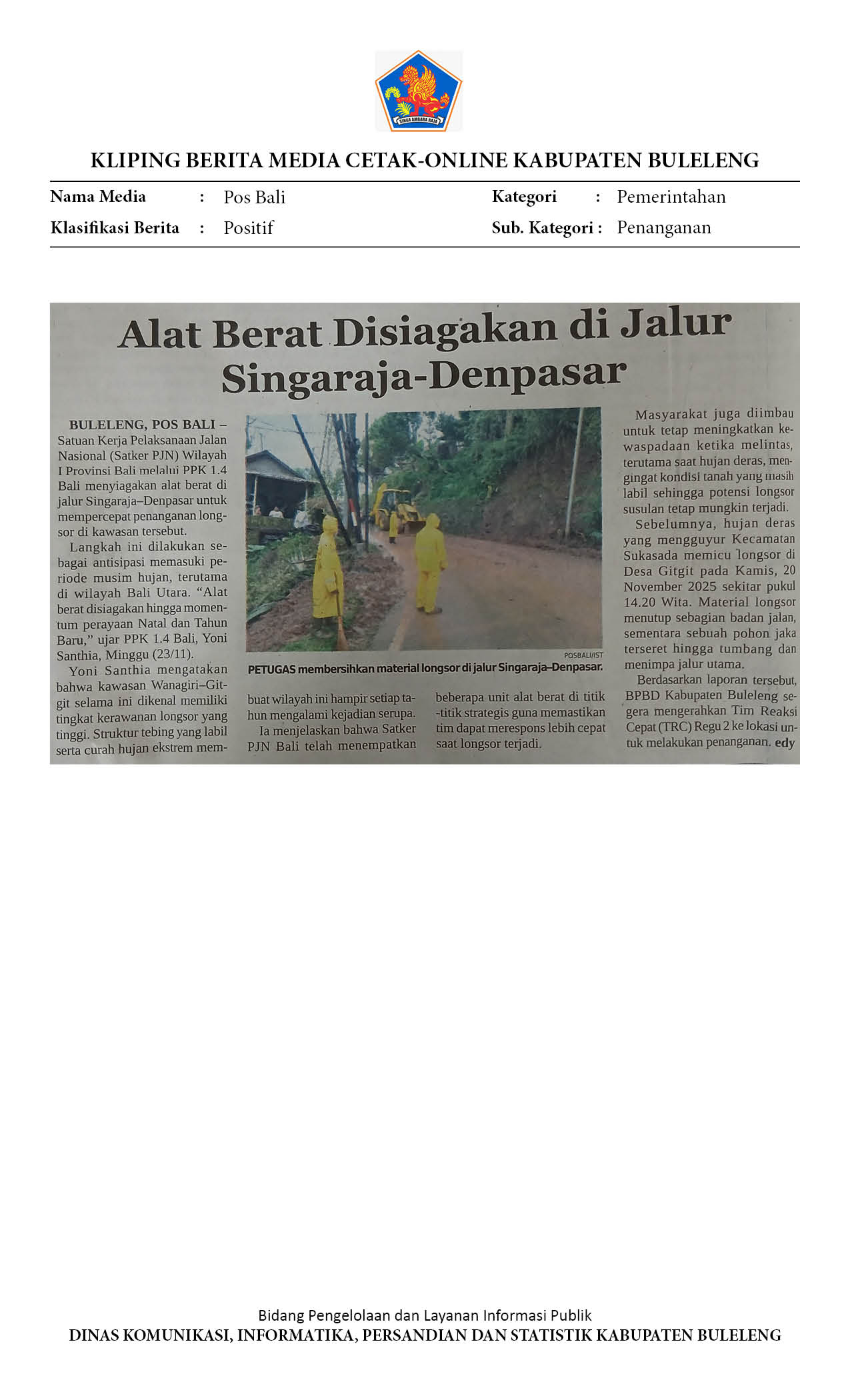 ALAT BERAT DISIAGAKAN DI JALUR SINGARAJA-DENPASAR