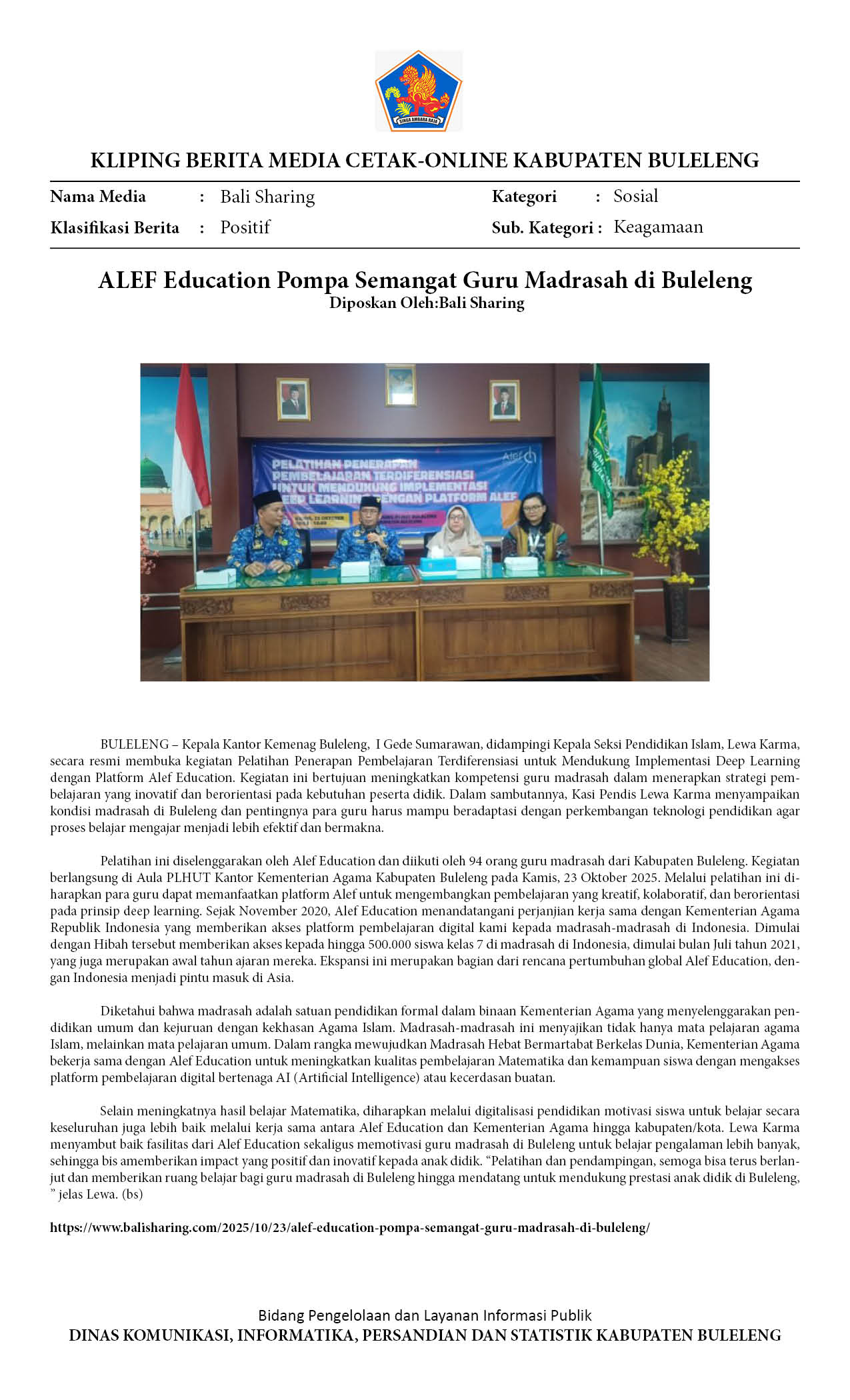 ALEF EDUCATION POMPA SEMANGAT GURU MADRASAH DI BULELENG