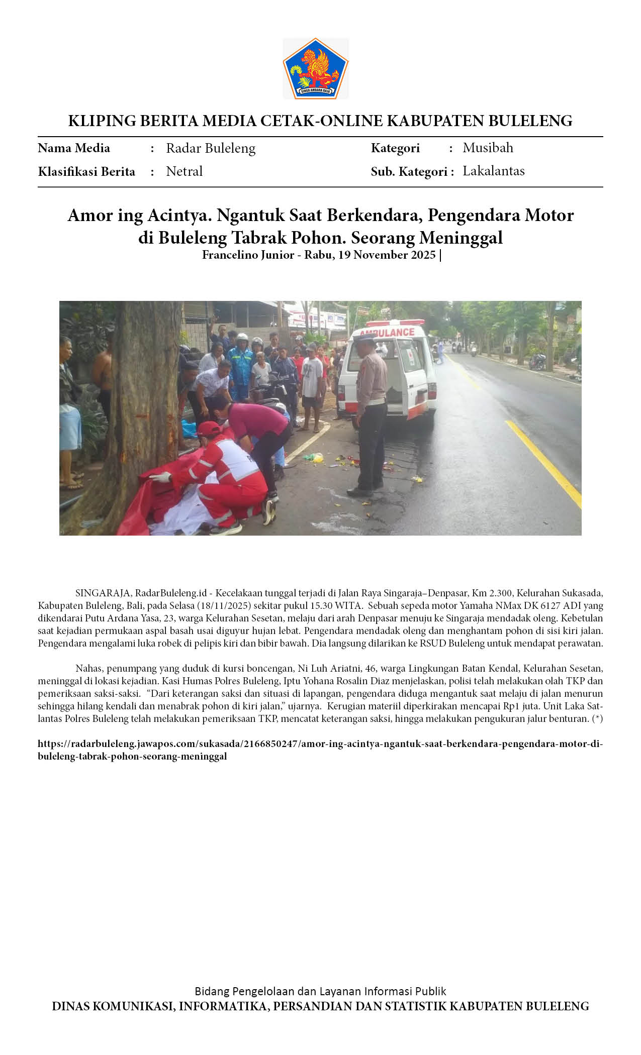 AMOR ING ACINTYA. NGANTUK SAAT BERKENDARA, PENGENDARA MOTOR DI BULELENG TABRAK POHON. SEORANG MENINGGAL