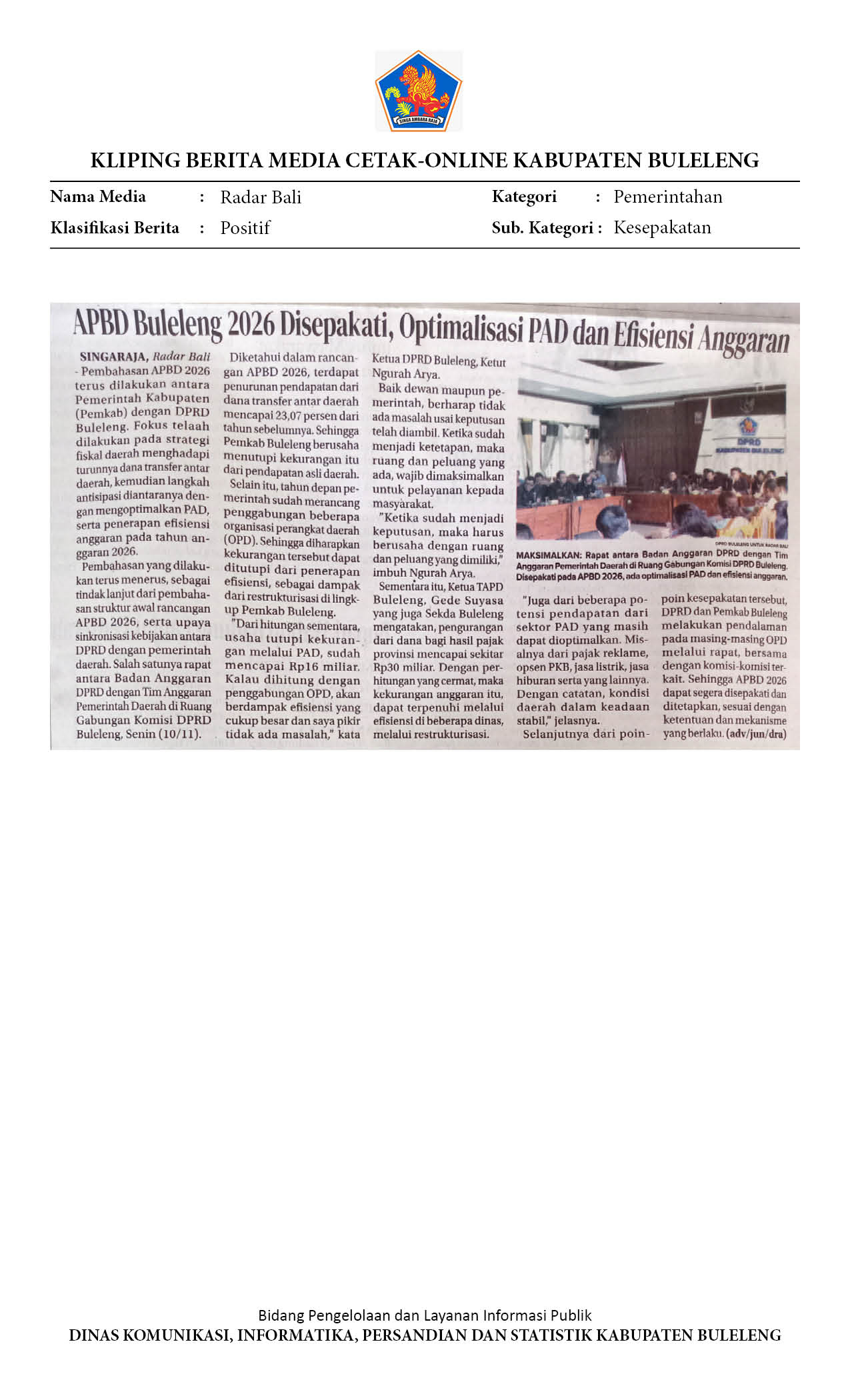 APBD BULELENG 2026 DISEPAKATI, OPTIMALISASI PAD DAN EFISIENSI ANGGARAN