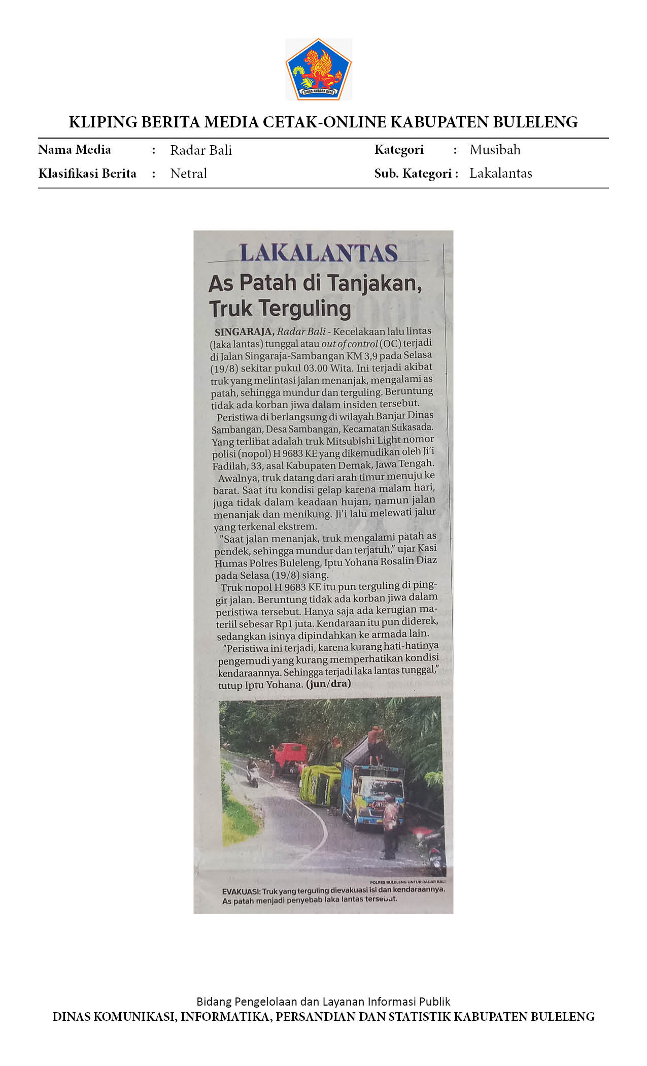 AS PATAH DI TANJAKAN TRUK TERGULING