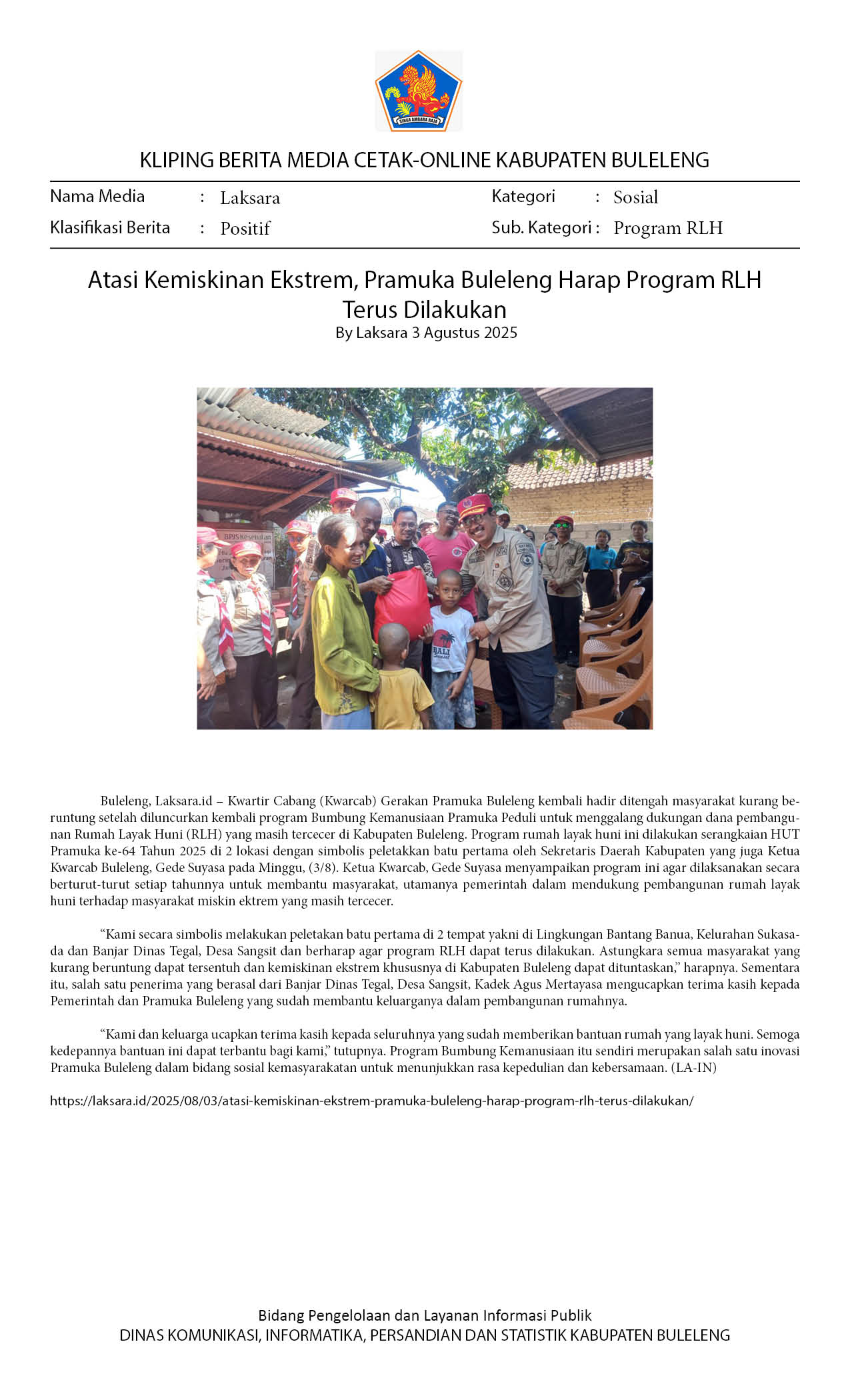 Atasi Kemiskinan Ekstrem, Pramuka Buleleng Harap Program RLH Terus Dilakukan