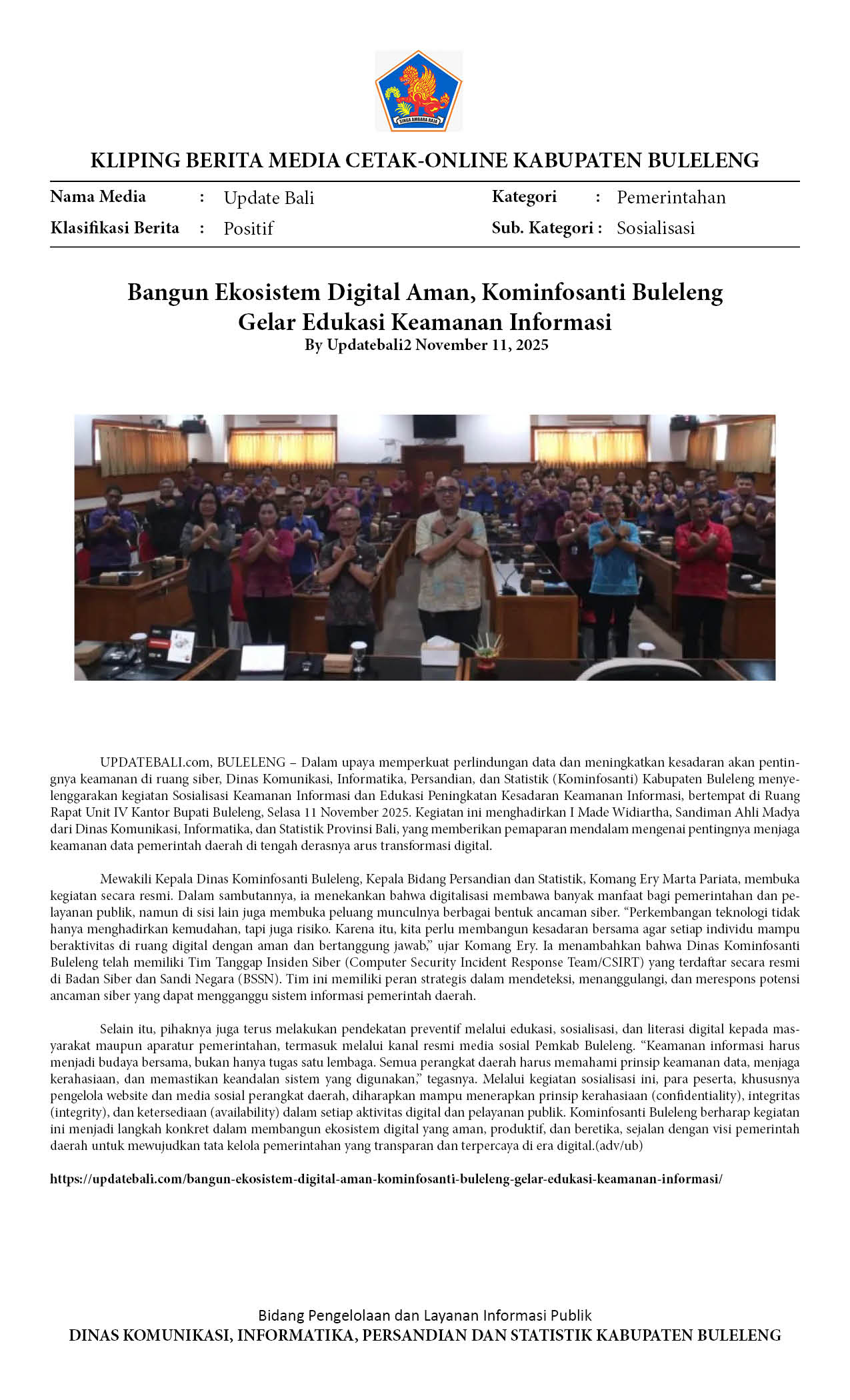Bangun Ekosistem Digital Aman, Kominfosanti Buleleng Gelar Edukasi Keamanan Informasi