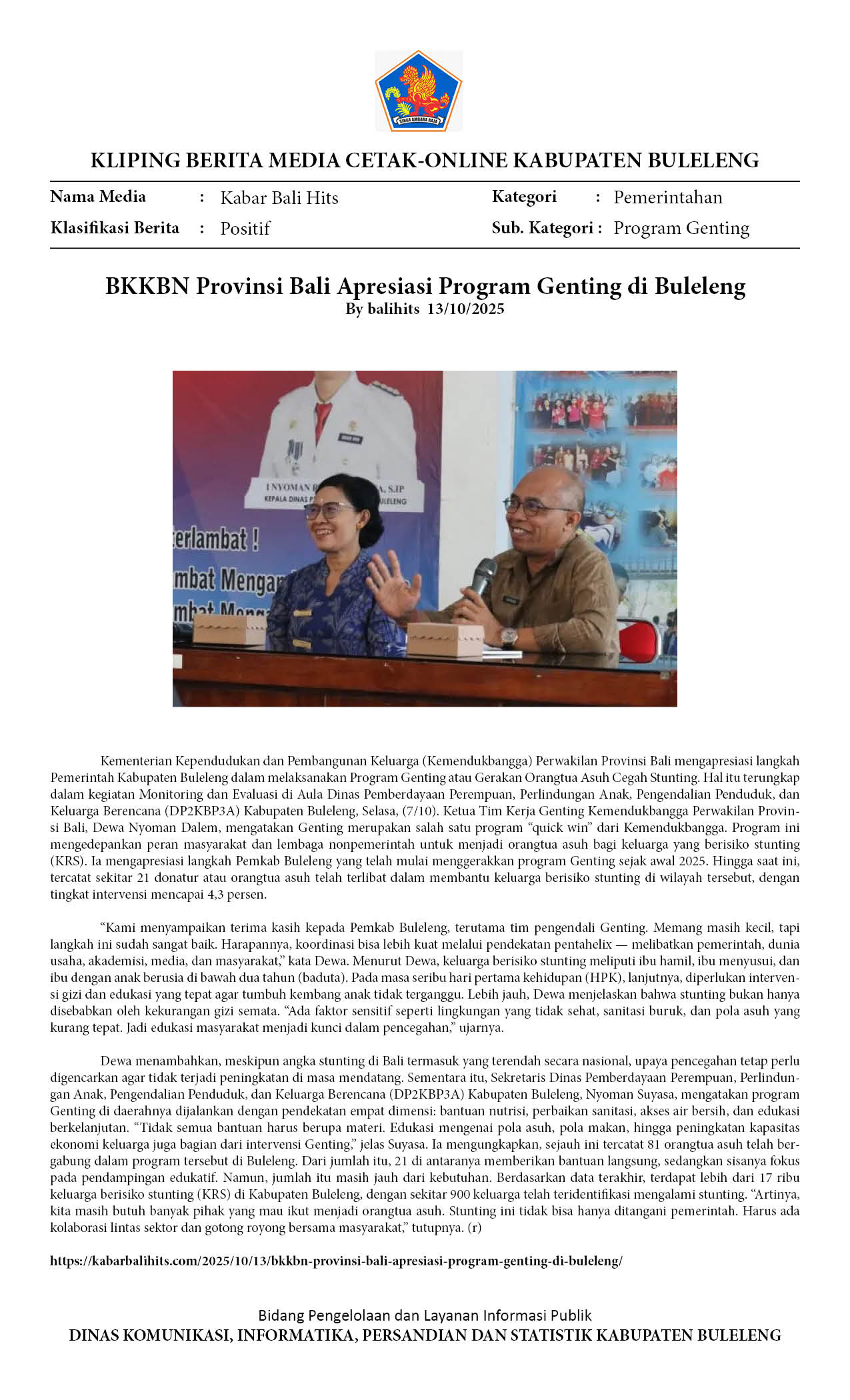 BKKBN Provinsi Bali Apresiasi Program Genting di Buleleng