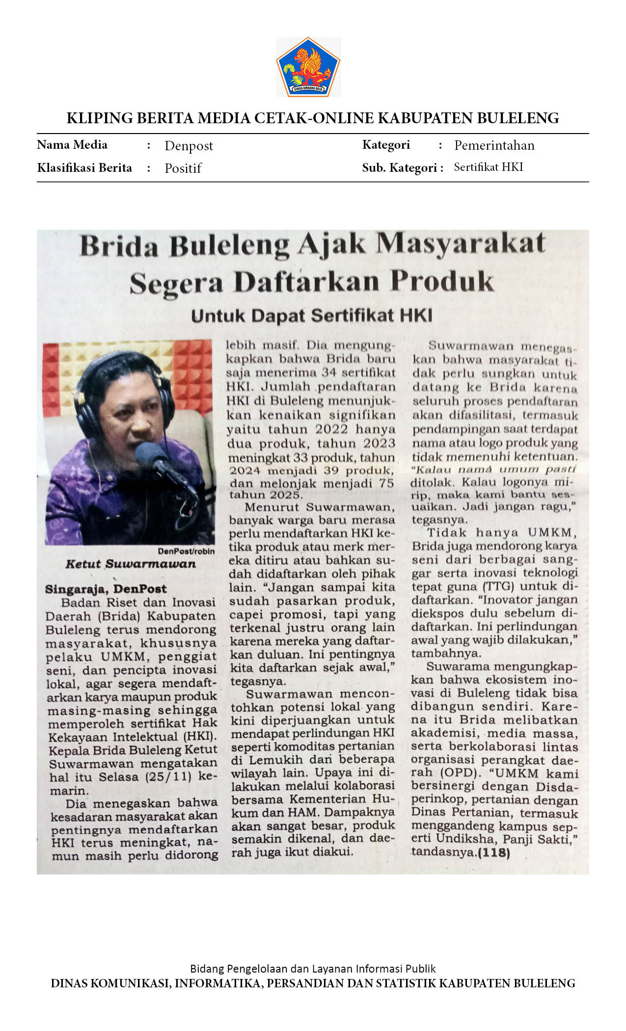 BRIDA BULELENG AJAK MASYARAKAT SEGERA DAFTARKAN PRODUK