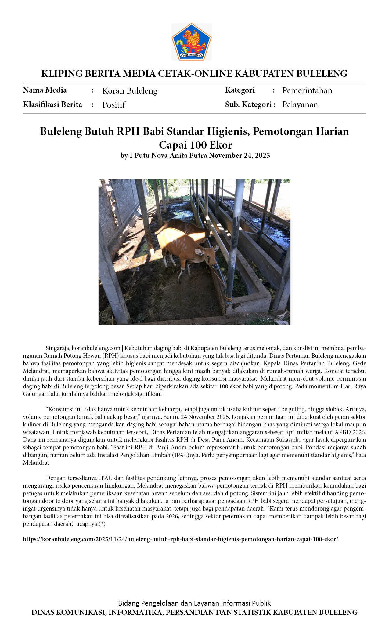 BULELENG BUTUH RPH BABI STANDAR HIGIENIS, PEMOTONGAN HARIAN CAPAI 100 EKOR