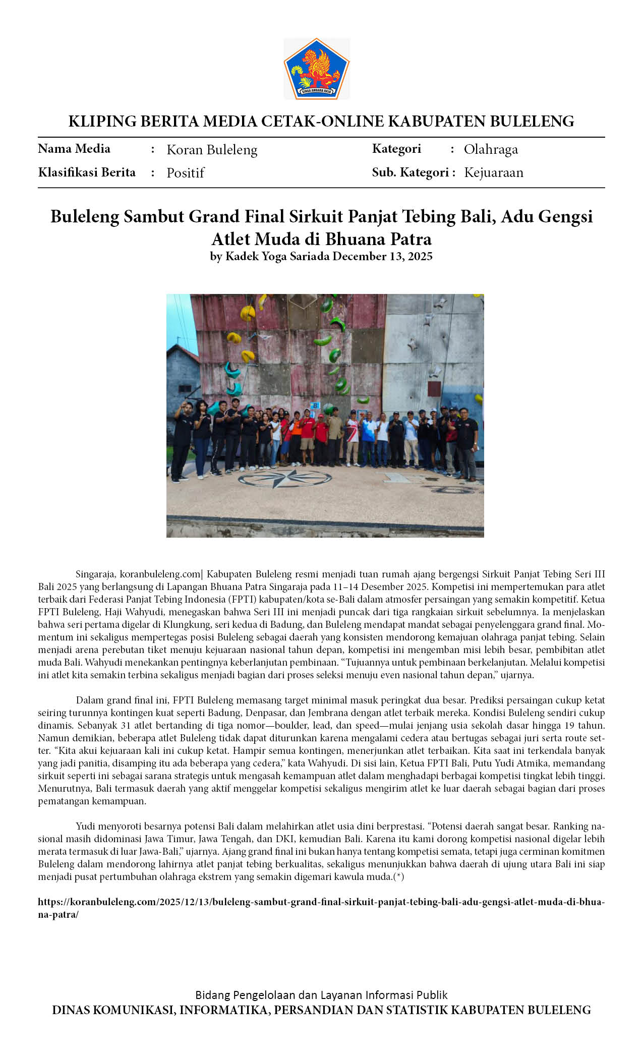 Buleleng Sambut Grand Final Sirkuit Panjat Tebing Bali, Adu Gengsi Atlet Muda di Bhuana Patra