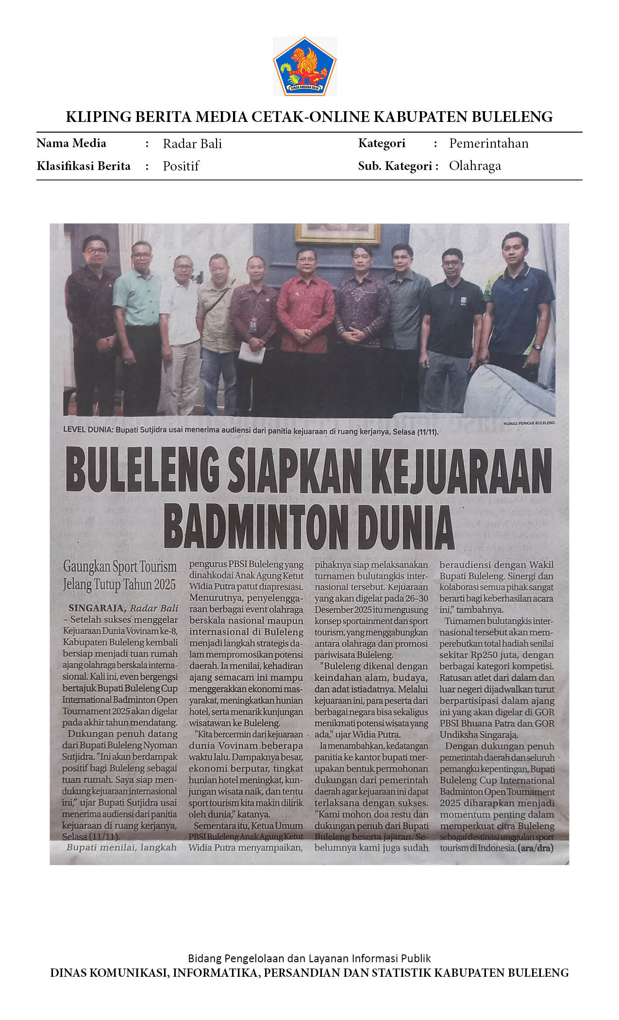 BULELENG SIAPKAN KEJUARAAN BADMINTON DUNIA