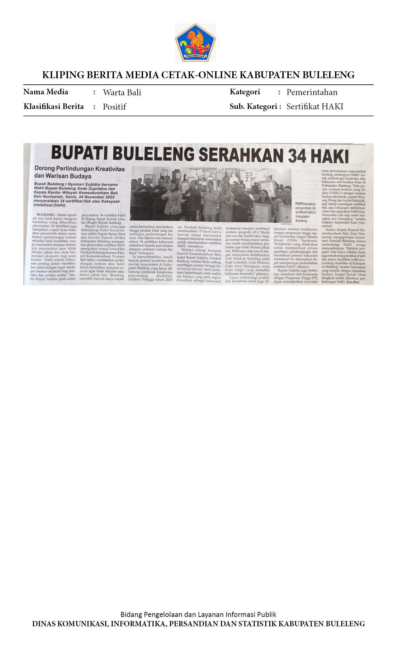 BUPATI BULELENG SERAHKAN 34 HAKI