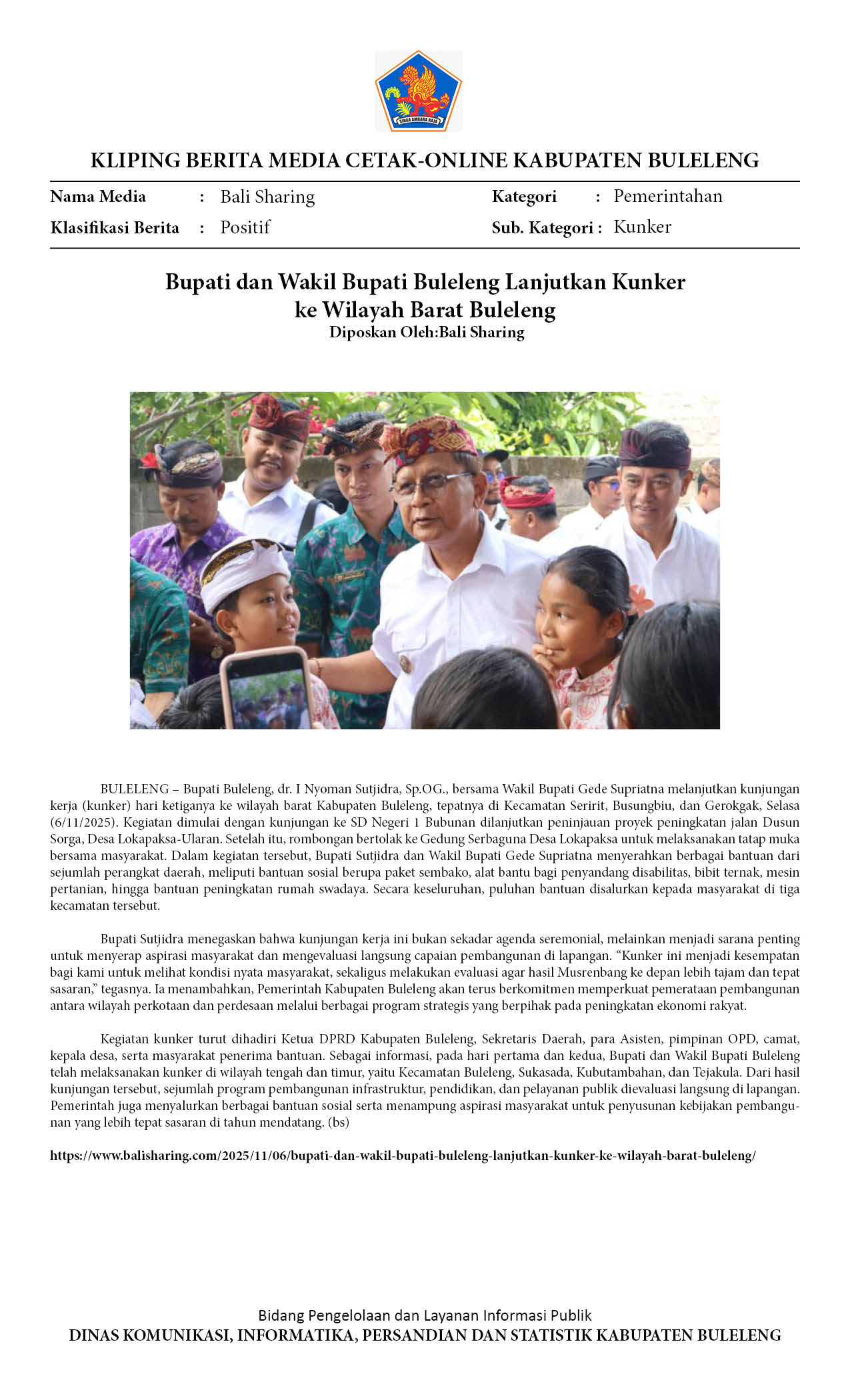 BUPATI DAN WAKIL BUPATI BULELENG LANJUTKAN KUNKER KE WILAYAH BARAT BULELENG