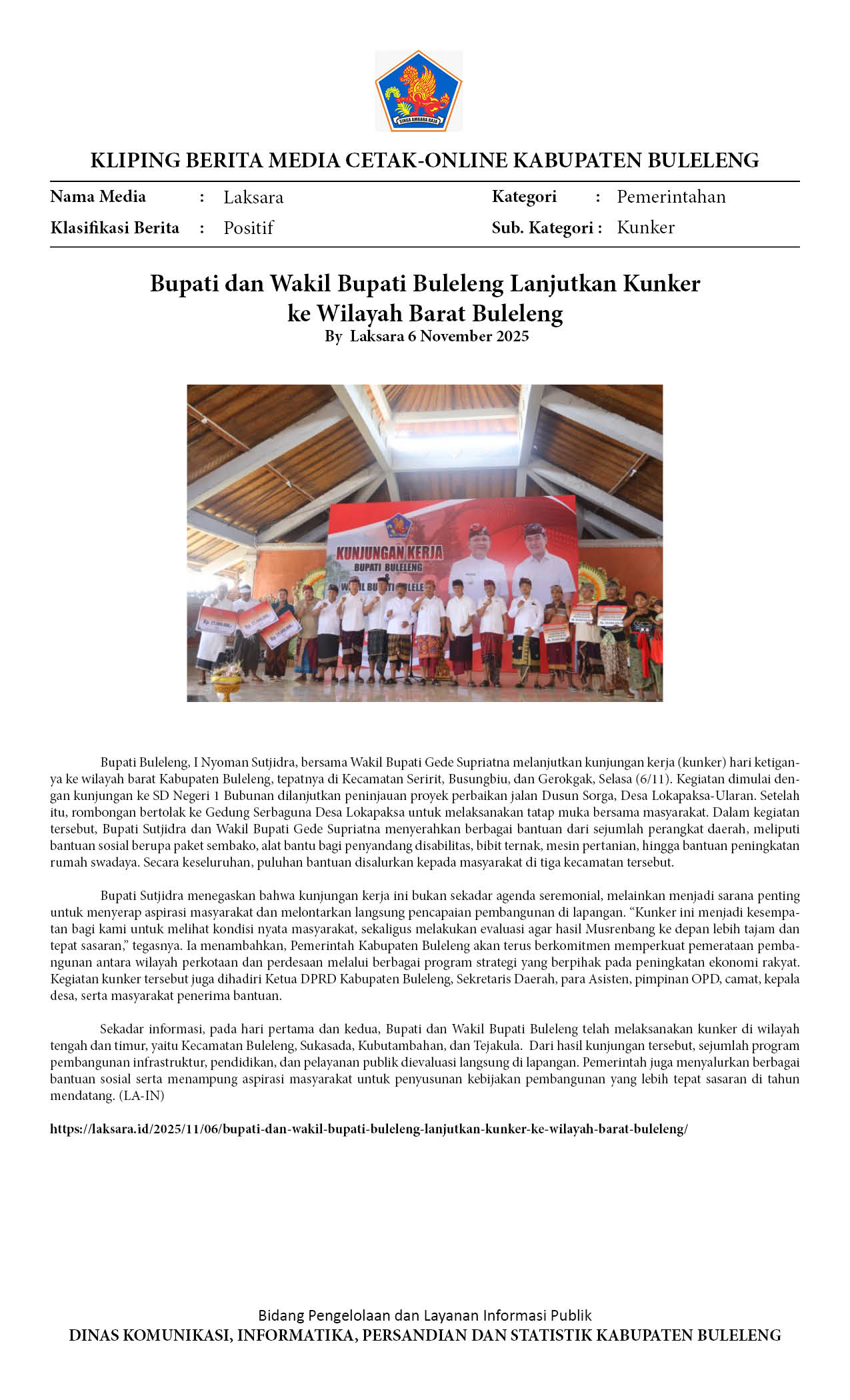 BUPATI DAN WAKIL BUPATI BULELENG LANJUTKAN KUNKER KE WILAYAH BARAT BULELENG