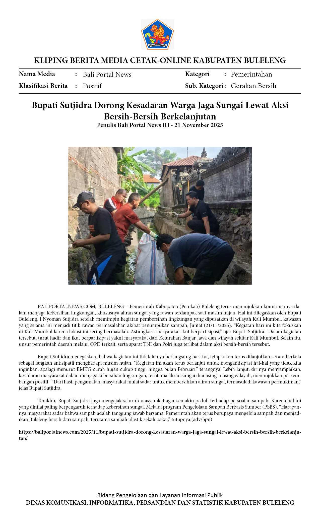 BUPATI SUTJIDRA DORONG KESADARAN WARGA JAGA SUNGAI LEWAT AKSI BERSIH-BERSIH BERKELANJUTAN