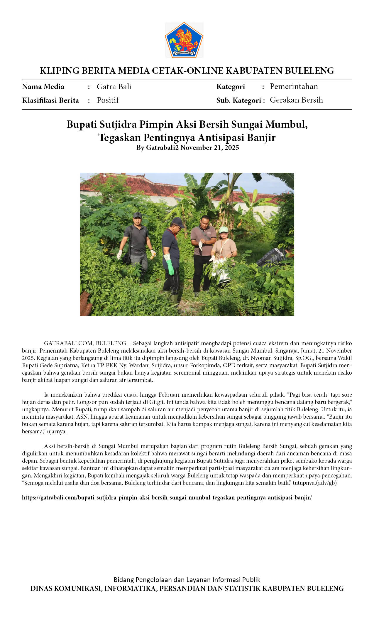 BUPATI SUTJIDRA PIMPIN AKSI BERSIH SUNGAI MUMBUL, TEGASKAN PENTINGNYA ANTISIPASI BANJIR