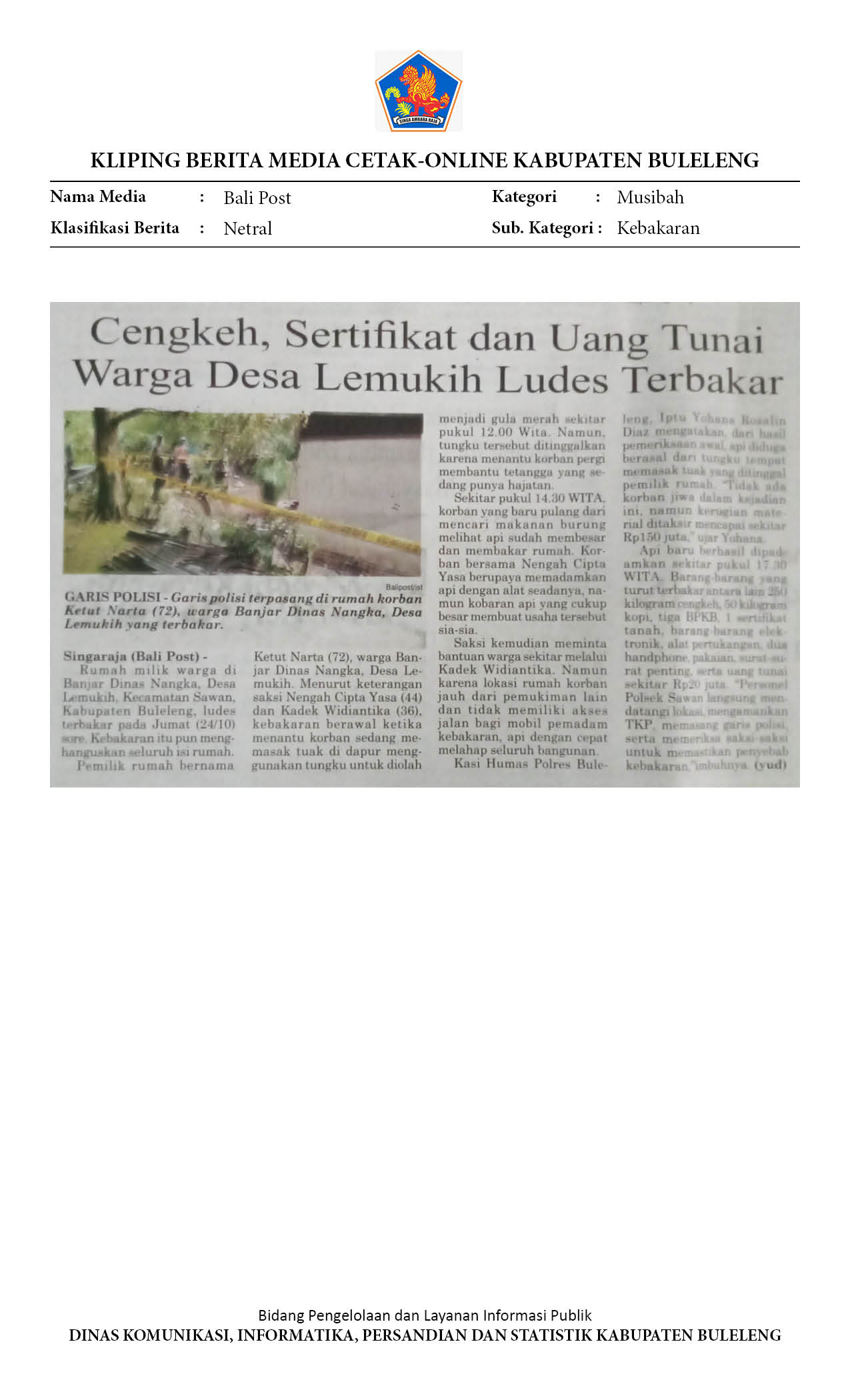 Cengkeh, Sertifikat dan Uang Tunai Warga Desa Lemukih Ludes Terbakar