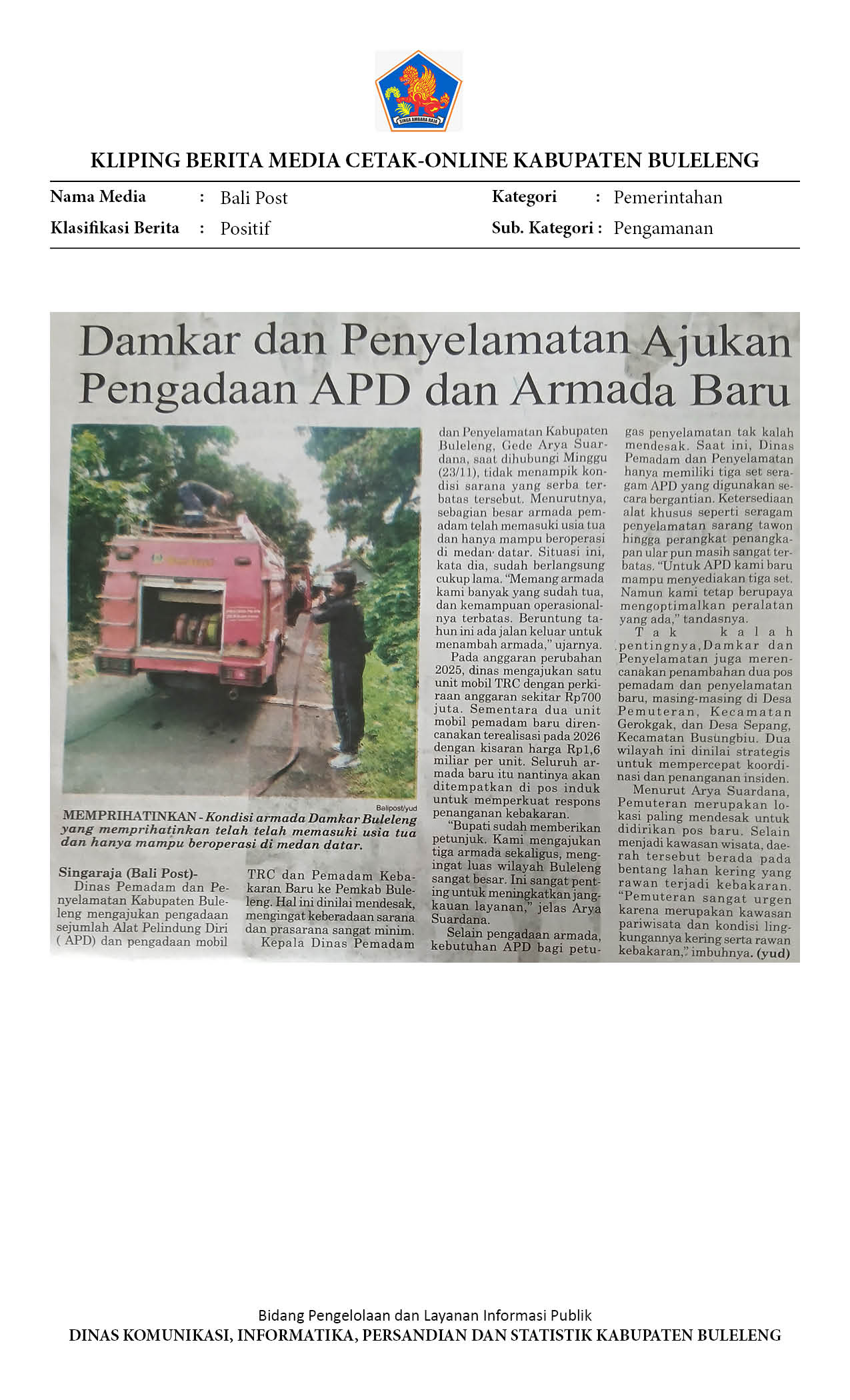 DAMKAR DAN PENYELAMATAN AJUKAN PENGADAAN APD DAN ARMADA BARU