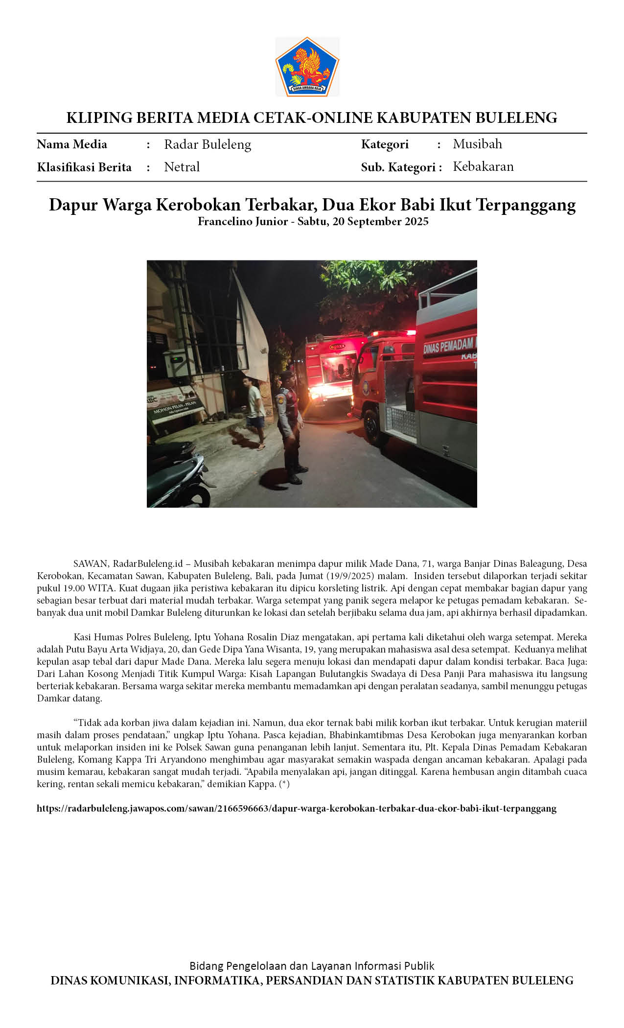 Dapur Warga Kerobokan Terbakar, Dua Ekor Babi Ikut Terpanggang