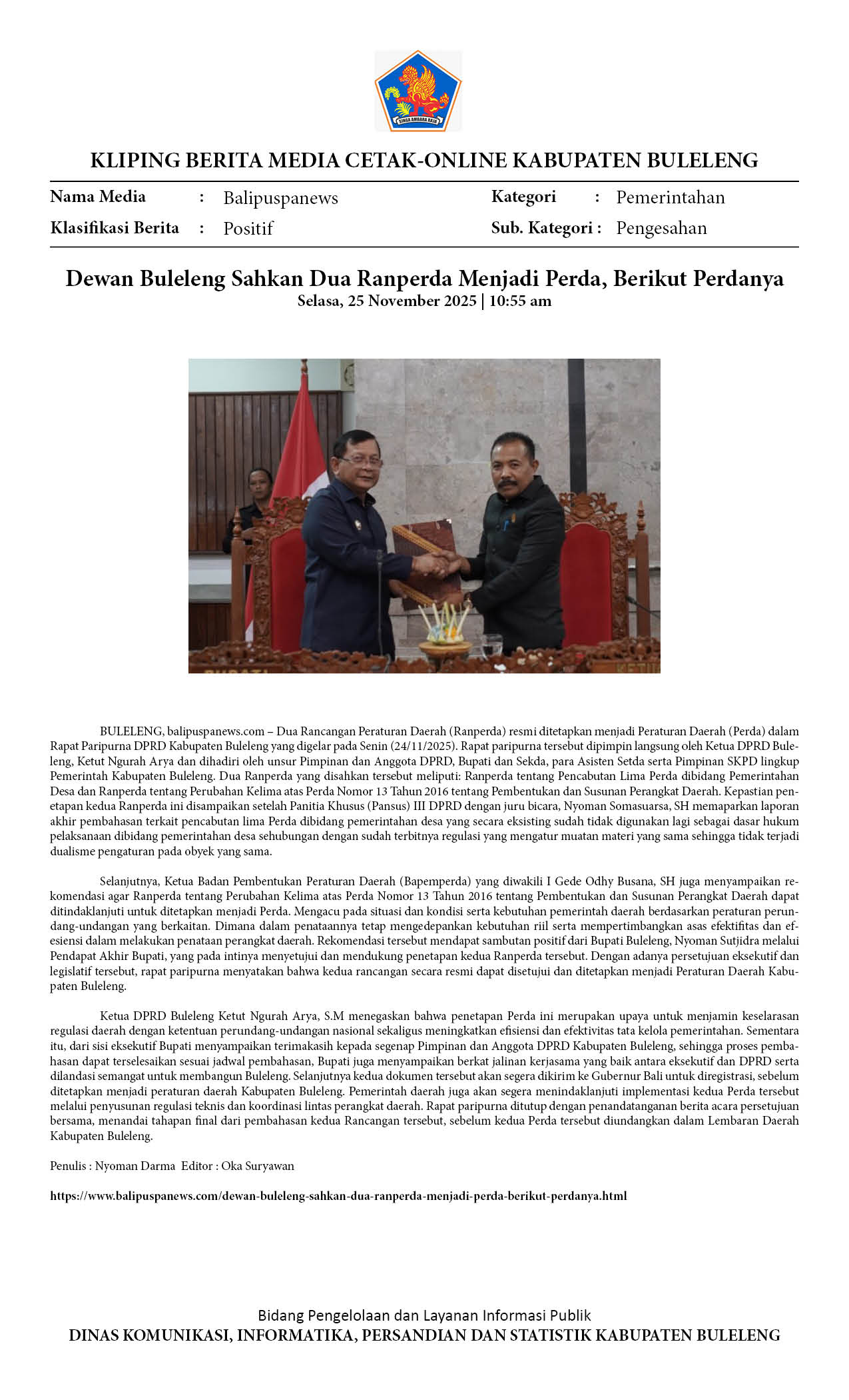 DEWAN BULELENG SAHKAN DUA RANPERDA MENJADI PERDA, BERIKUT PERDANYA