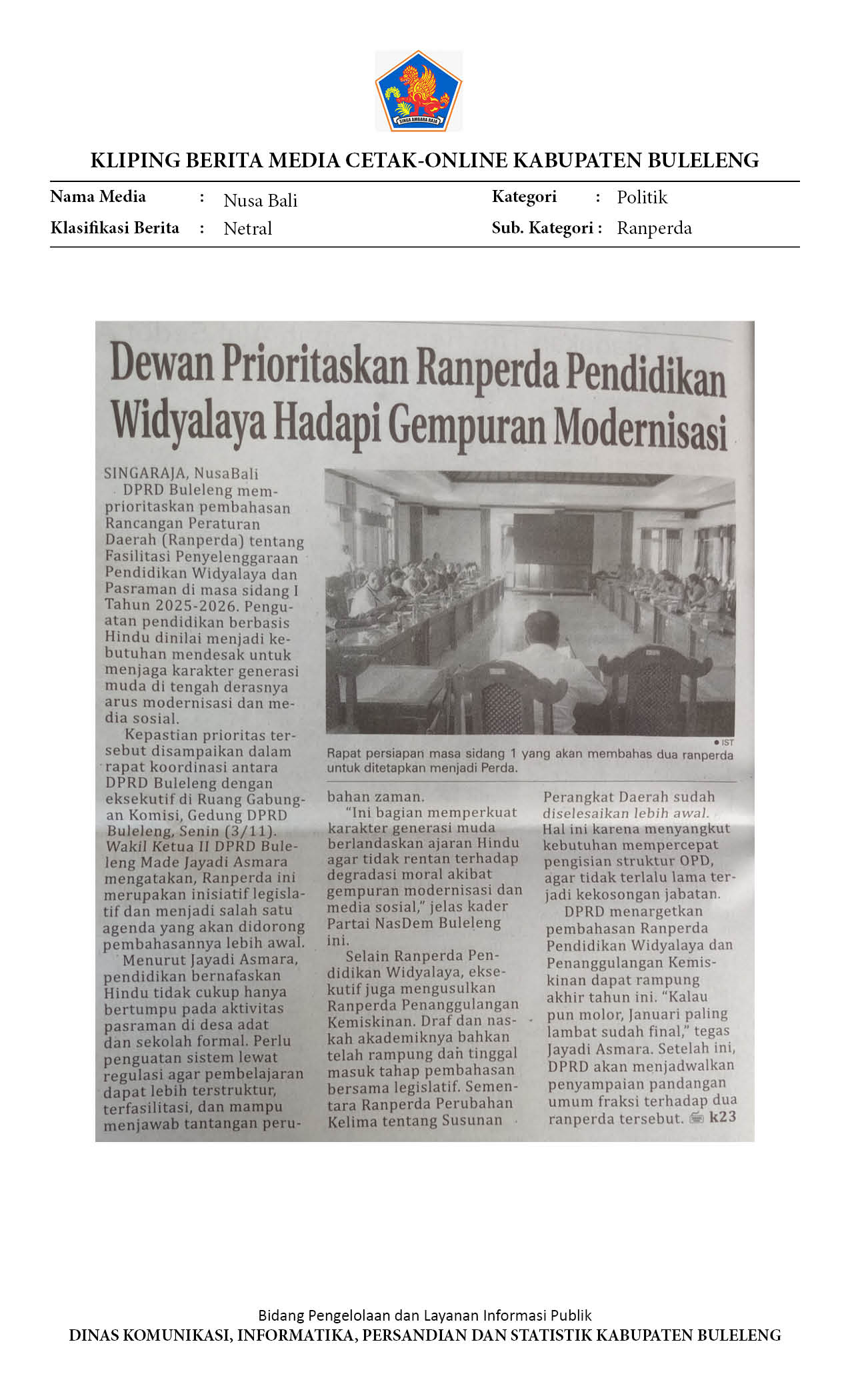 DEWAN PRIORITASKAN RANPERDA PENDIDIKAN WIDYALAYA HADAPI GEMPURAN MODERNISASI