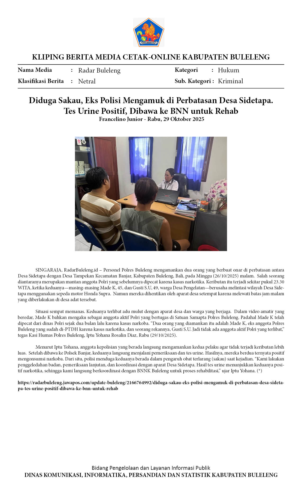 Diduga Sakau, Eks Polisi Mengamuk di Perbatasan Desa Sidetapa. Tes Urine Positif, Dibawa ke BNN untuk Rehab