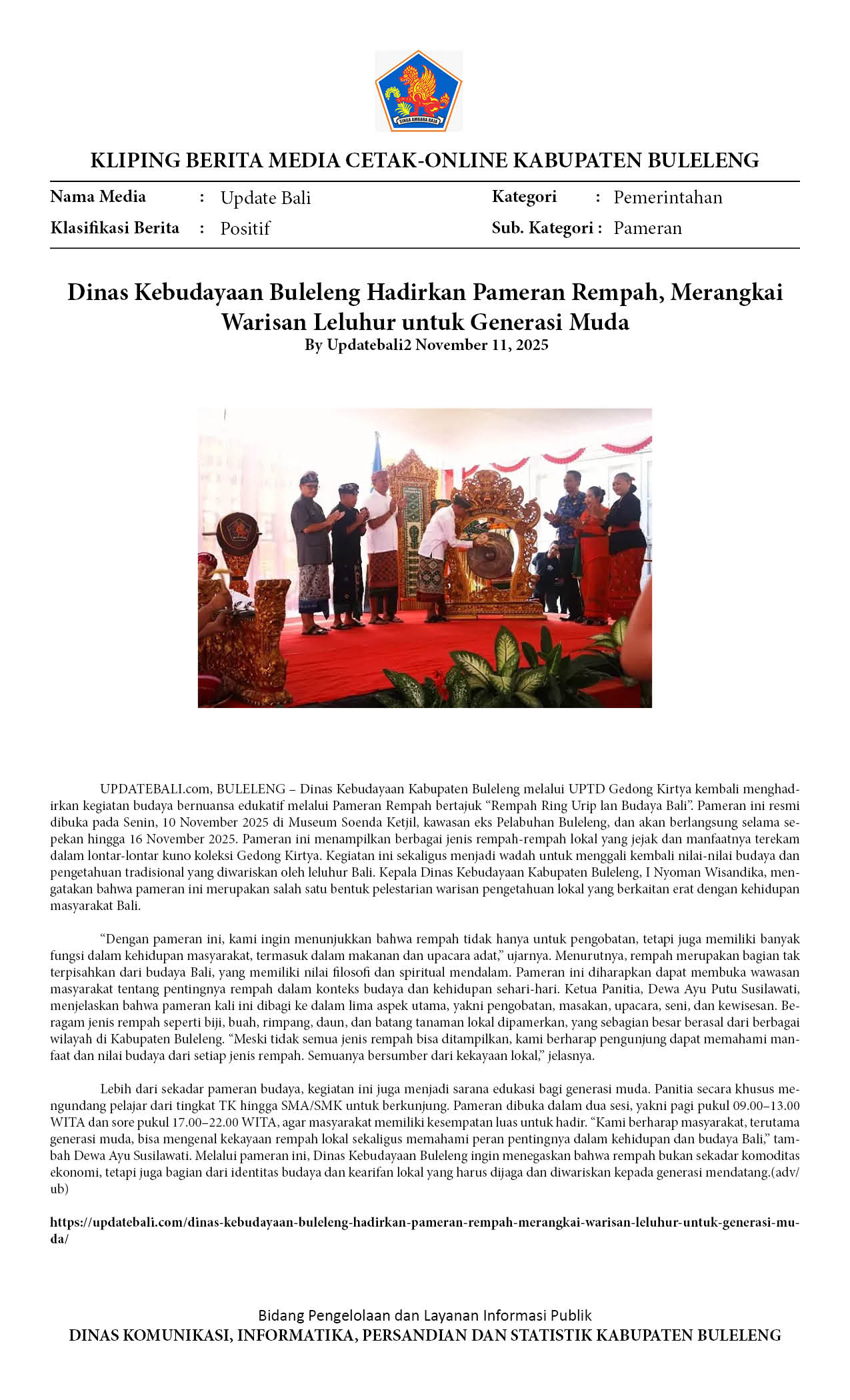 DINAS KEBUDAYAAN BULELENG HADIRKAN PAMERAN REMPAH, MERANGKAI WARISAN LELUHUR UNTUK GENERASI MUDA