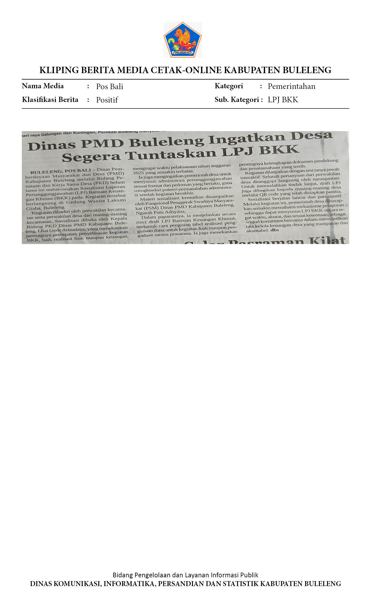 DINAS PMD BULELENG INGATKAN DESA SEGERA TUNTASKAN LPJ BKK