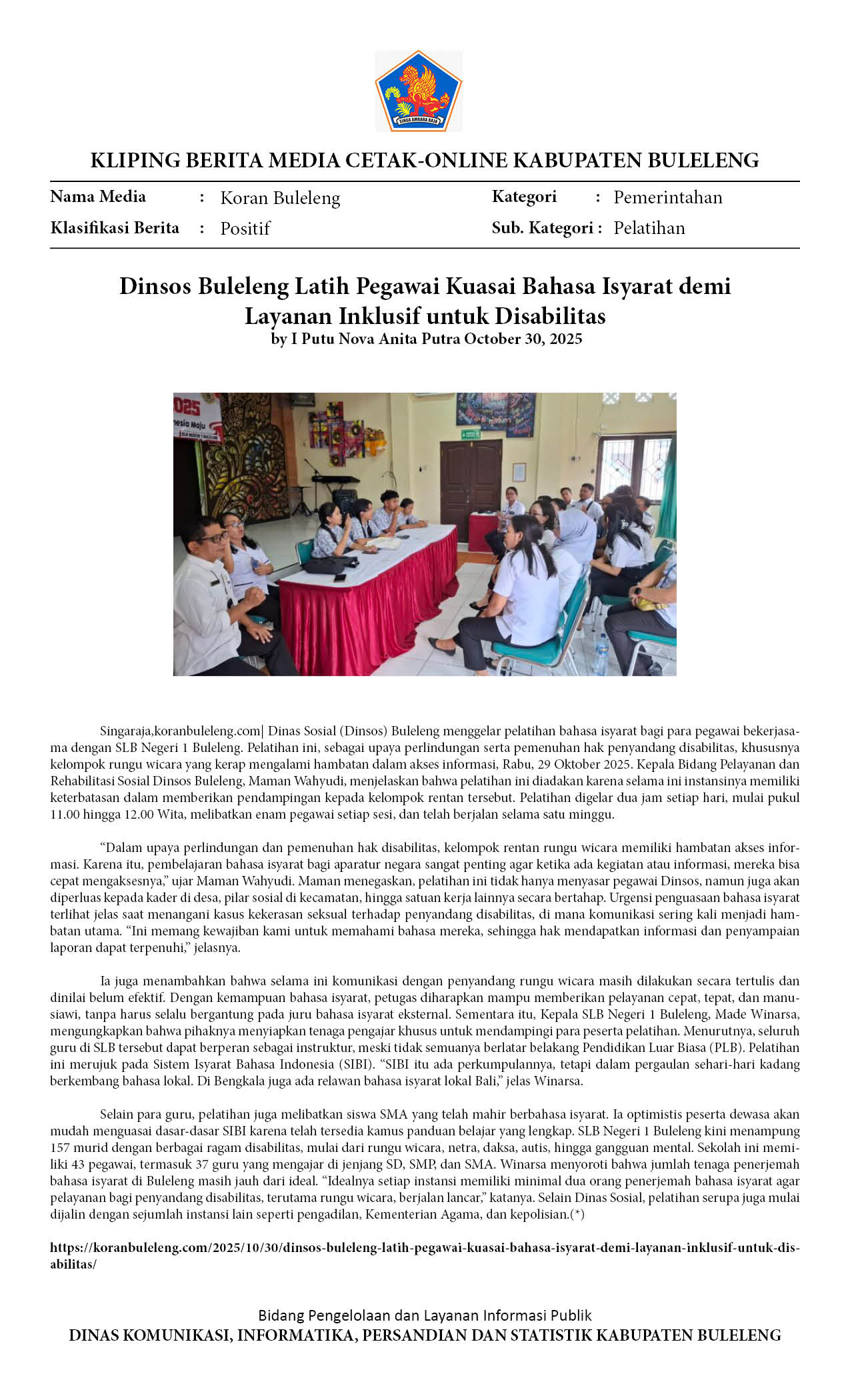 DINSOS BULELENG LATIH PEGAWAI KUASAI BAHASA ISYARAT DEMI LAYANAN INKLUSIF UNTUK DISABILITAS