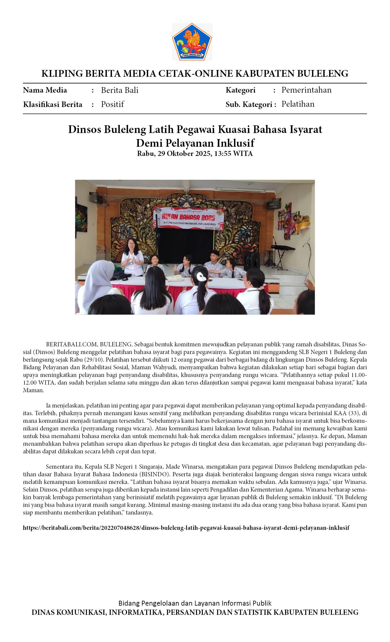 DINSOS BULELENG LATIH PEGAWAI KUASAI BAHASA ISYARAT DEMI PELAYANAN INKLUSIF