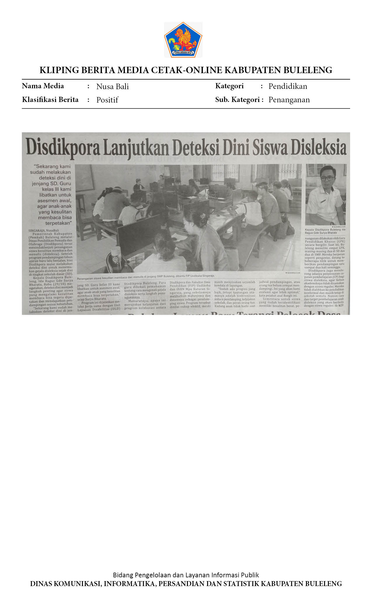 Disdikpora Lanjutkan Deteksi Dini Siswa Disleksia