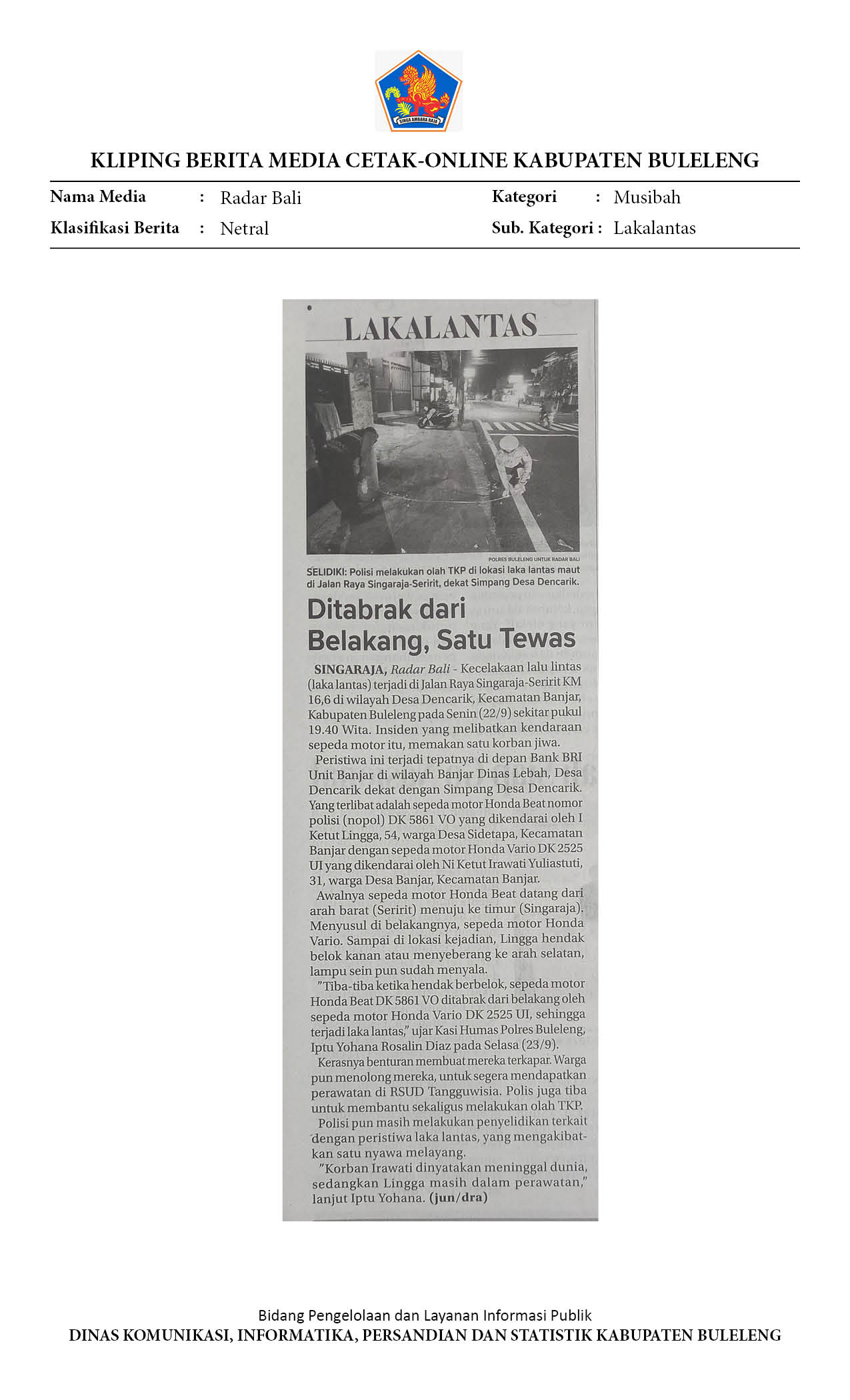 DITABRAK DARI BELAKANG, SATU TEWAS