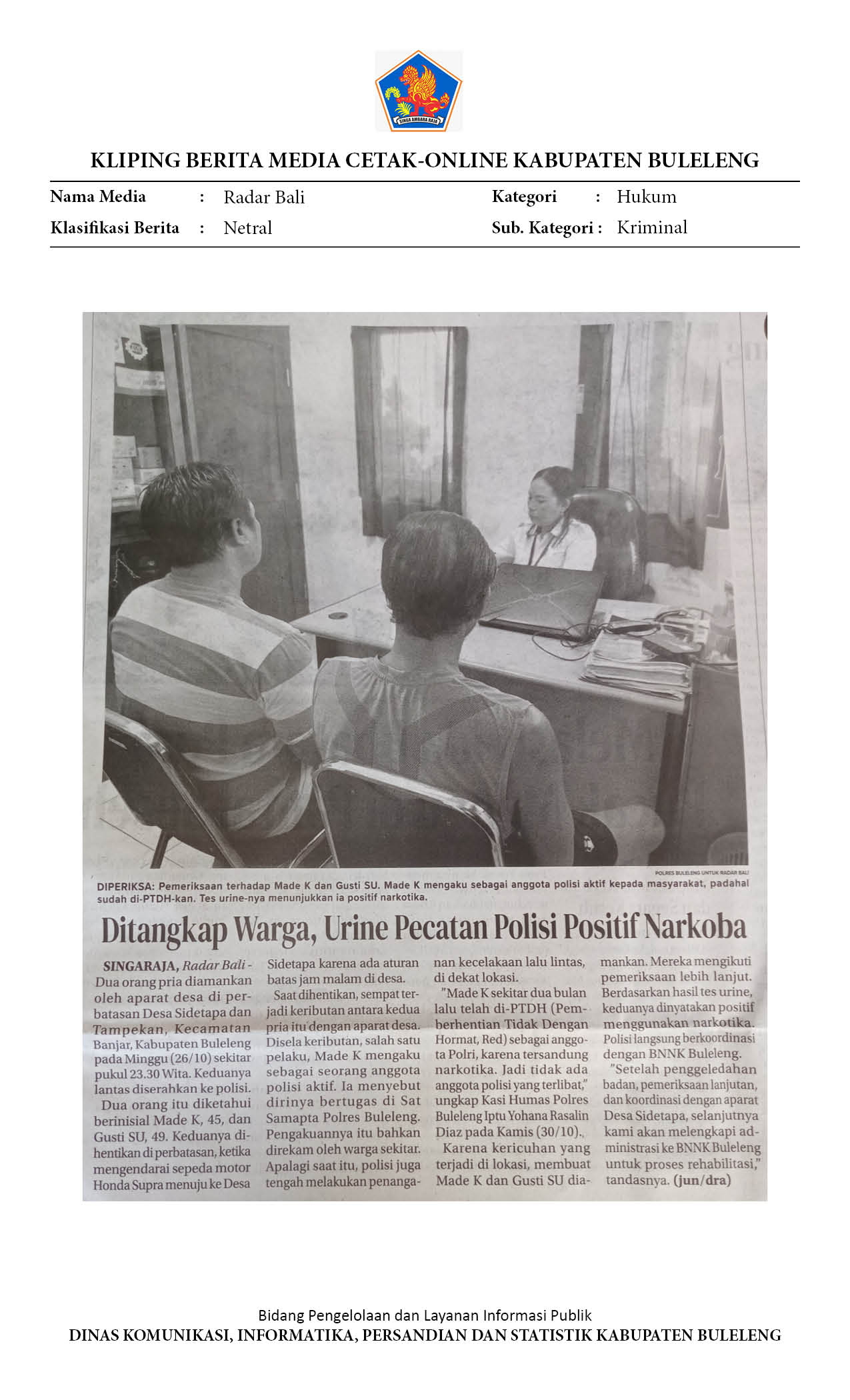 DITANGKAP WARGA, URINE PECATAN POLISI POSITIF NARKOBA