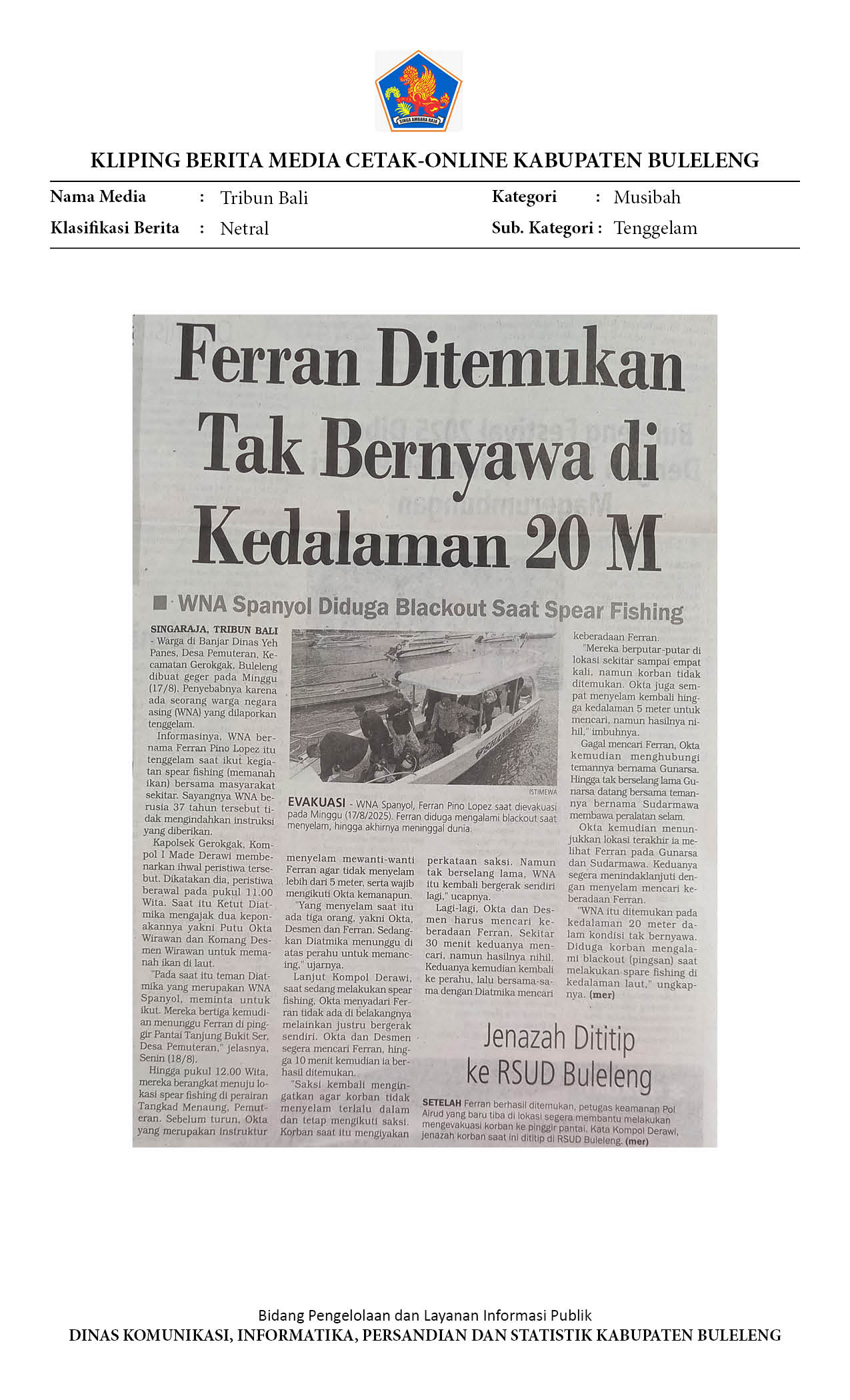 FERRAN DITEMUKAN TAK BERNYAWA DI KEDALAMAN 20 M