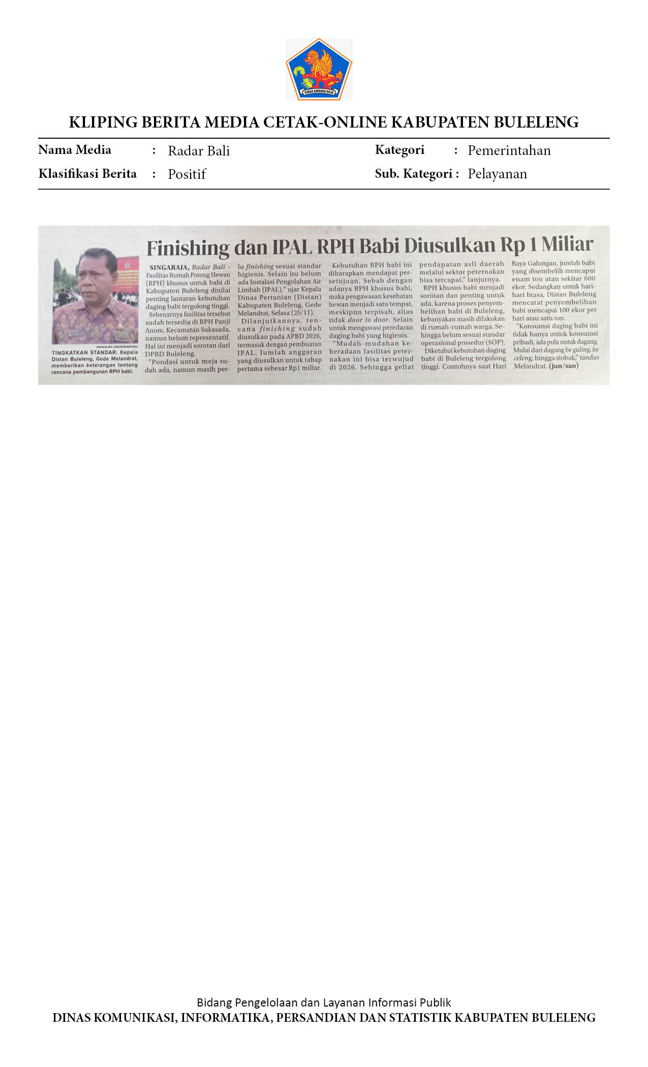 FINISHING DAN IPAL RPH BABI DIUSULKAN RP 1 MILIAR
