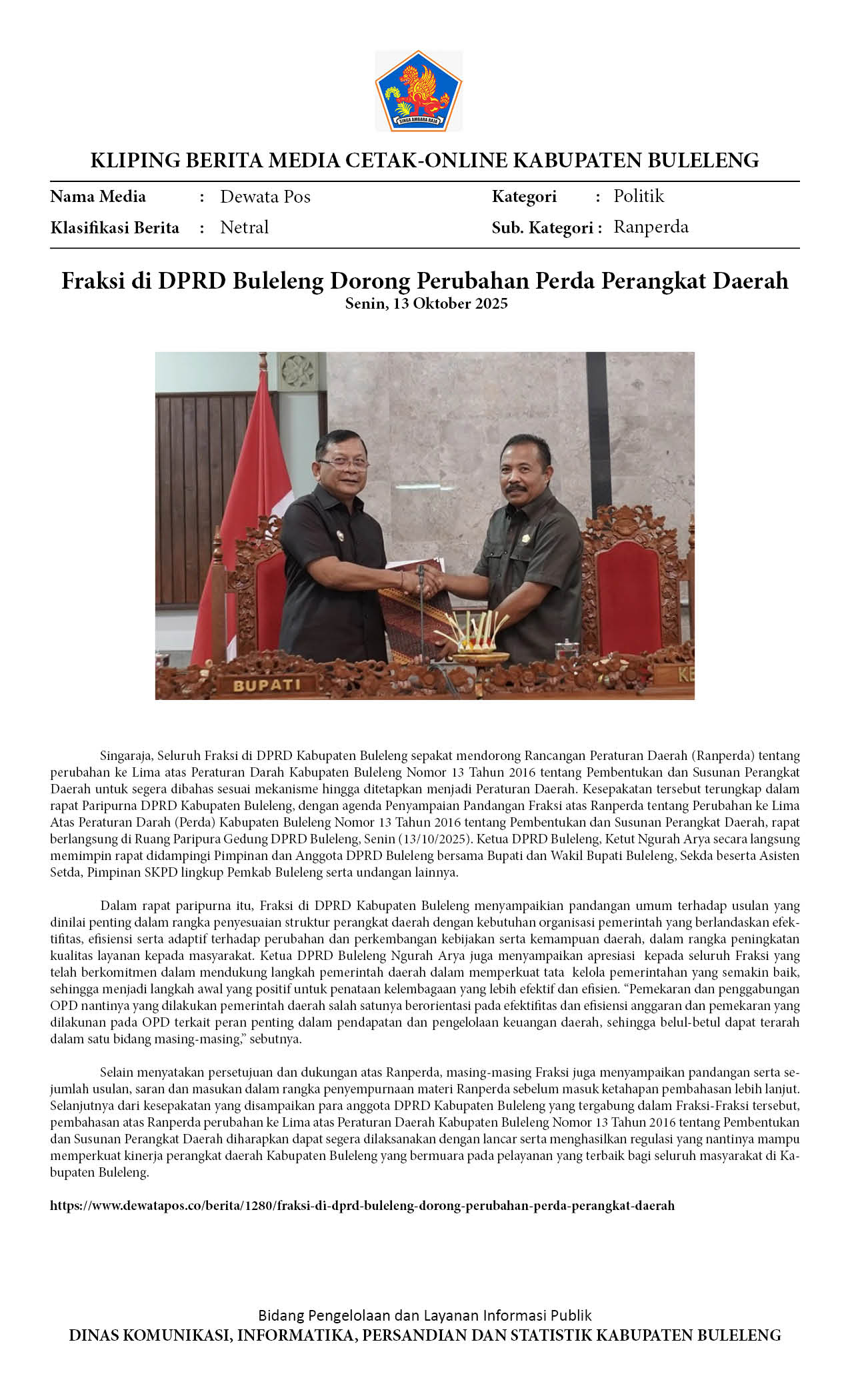 FRAKSI DI DPRD BULELENG DORONG PERUBAHAN PERDA PERANGKAT DAERAH