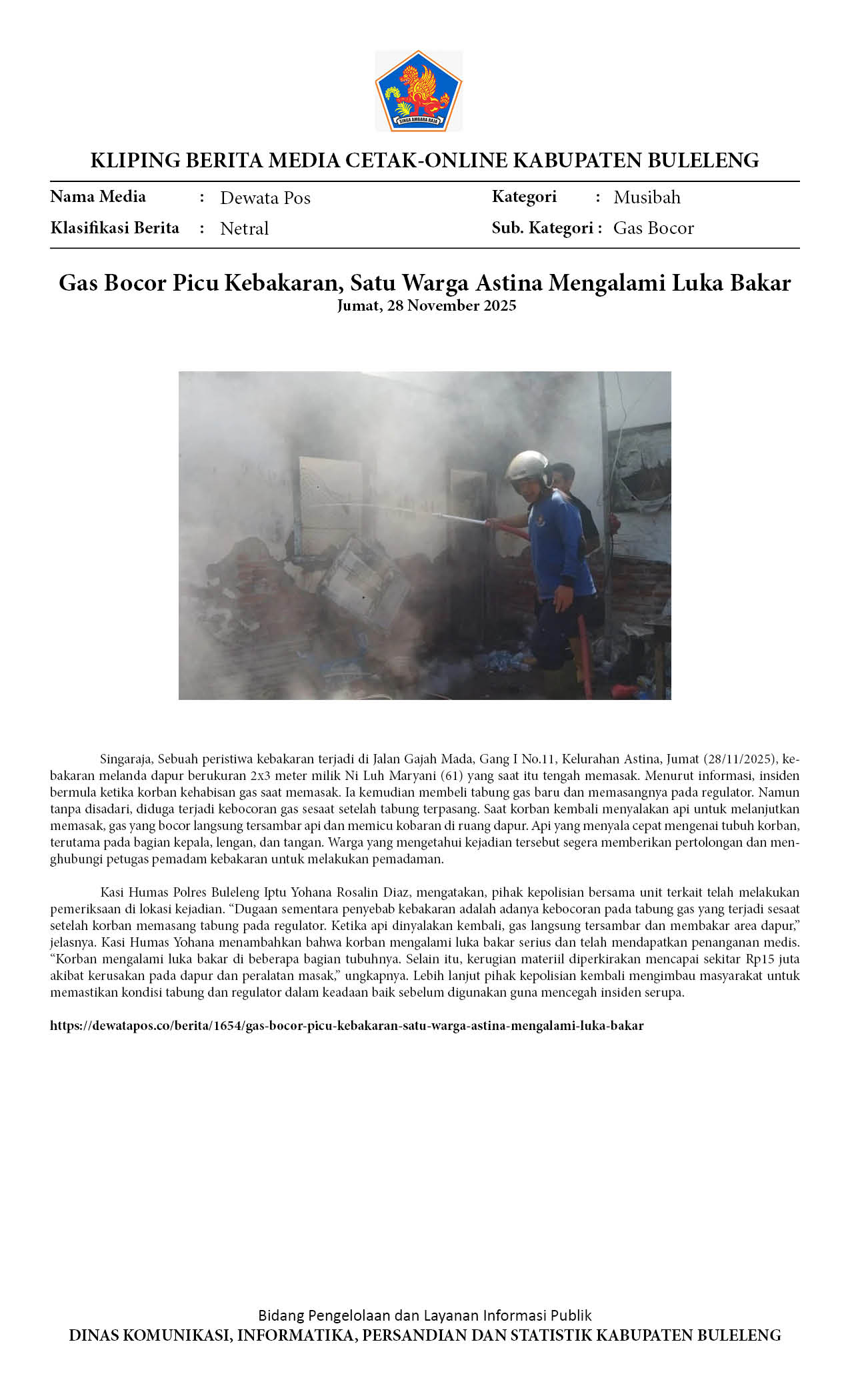GAS BOCOR PICU KEBAKARAN, SATU WARGA ASTINA MENGALAMI LUKA BAKAR