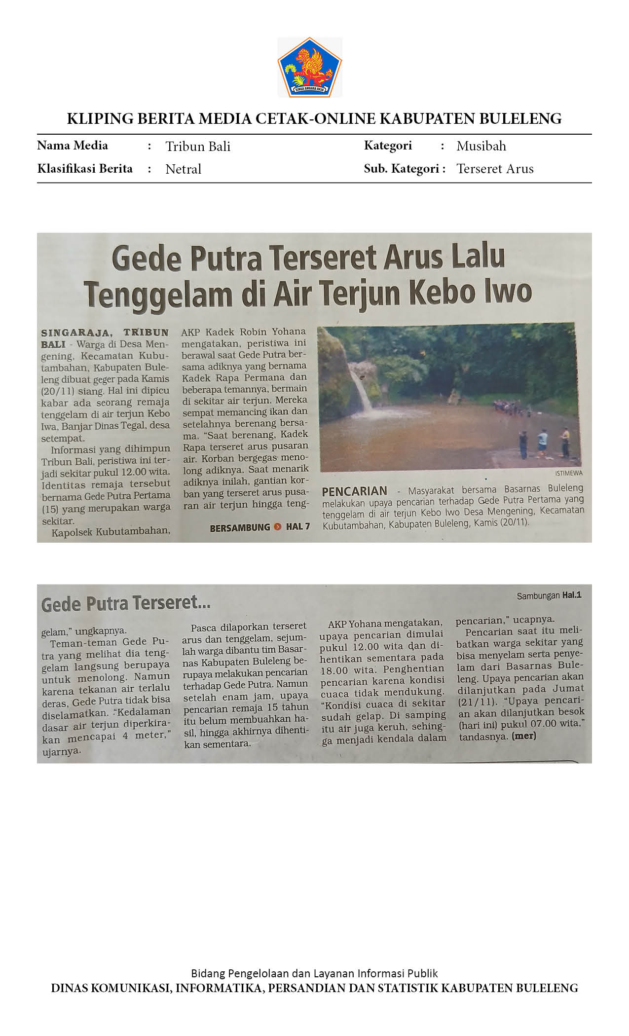 GEDE PUTRA TERSERET ARUS LALU TENGGELAM DI AIR TERJUN KBO IWO