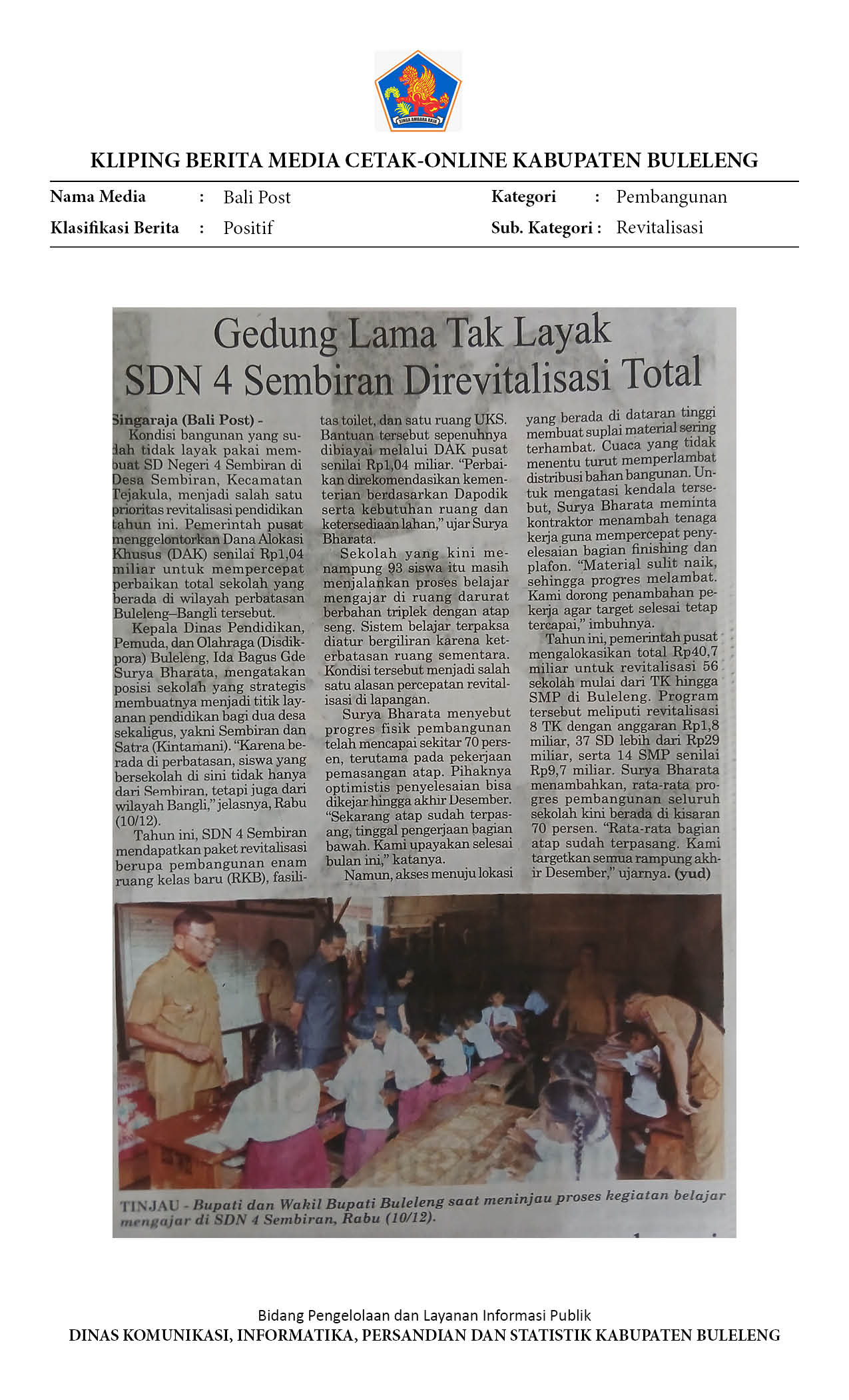 GEDUNG LAMA TAK LAYAK SDN 4 SEMBIRAN DIREVITALISASI TOTAL
