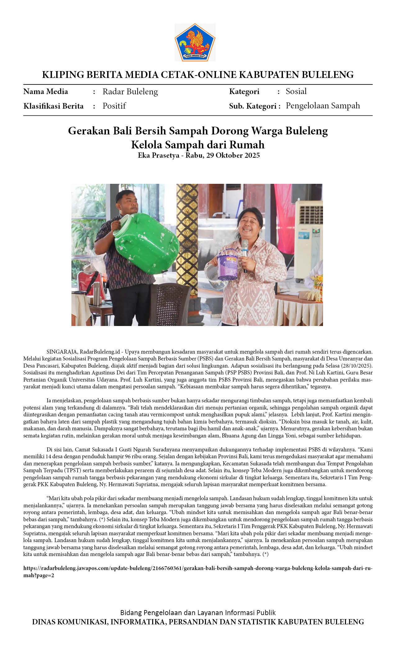 GERAKAN BALI BERSIH SAMPAH DORONG WARGA BULELENG KELOLA SAMPAH DARI RUMAH