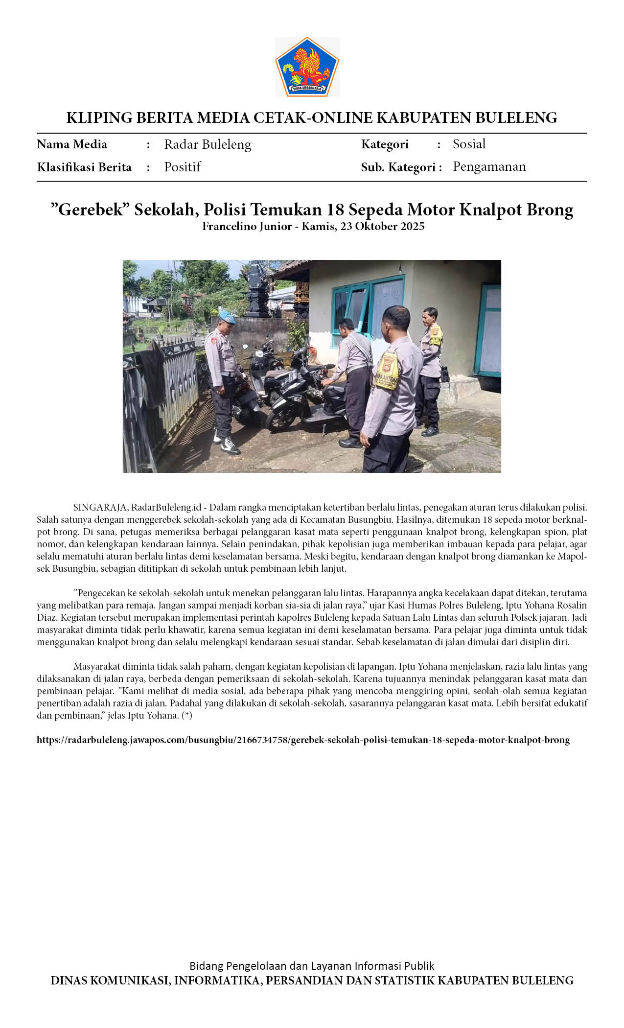 ”GEREBEK” SEKOLAH, POLISI TEMUKAN 18 SEPEDA MOTOR KNALPOT BRONG