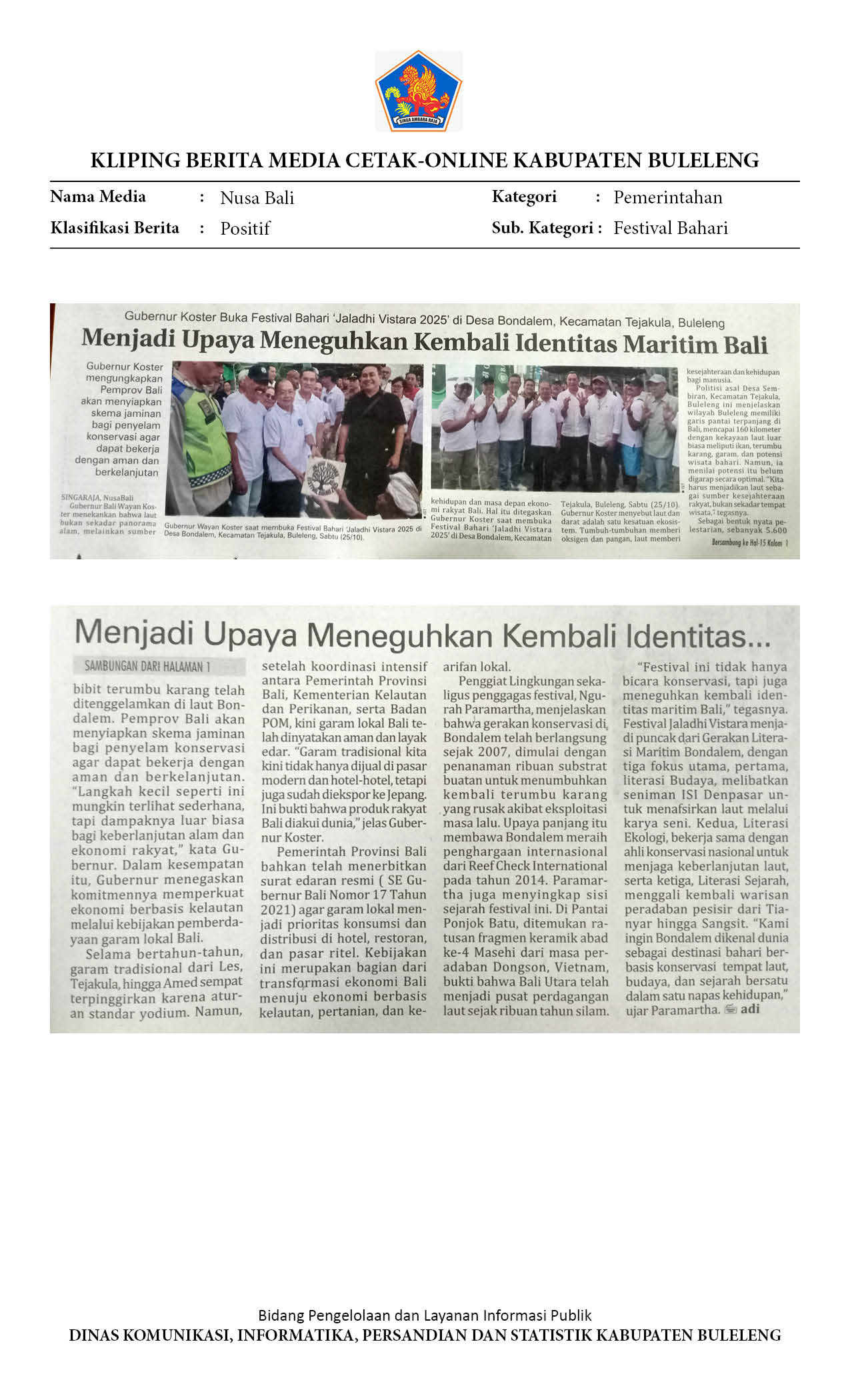 GUBERNUR KOSTER BUKA FESTIVAL BAHARI JALADHI VISTARA 2025 DI DESA BONDALEM, KECAMATAN TEJAKULA, BULELENG