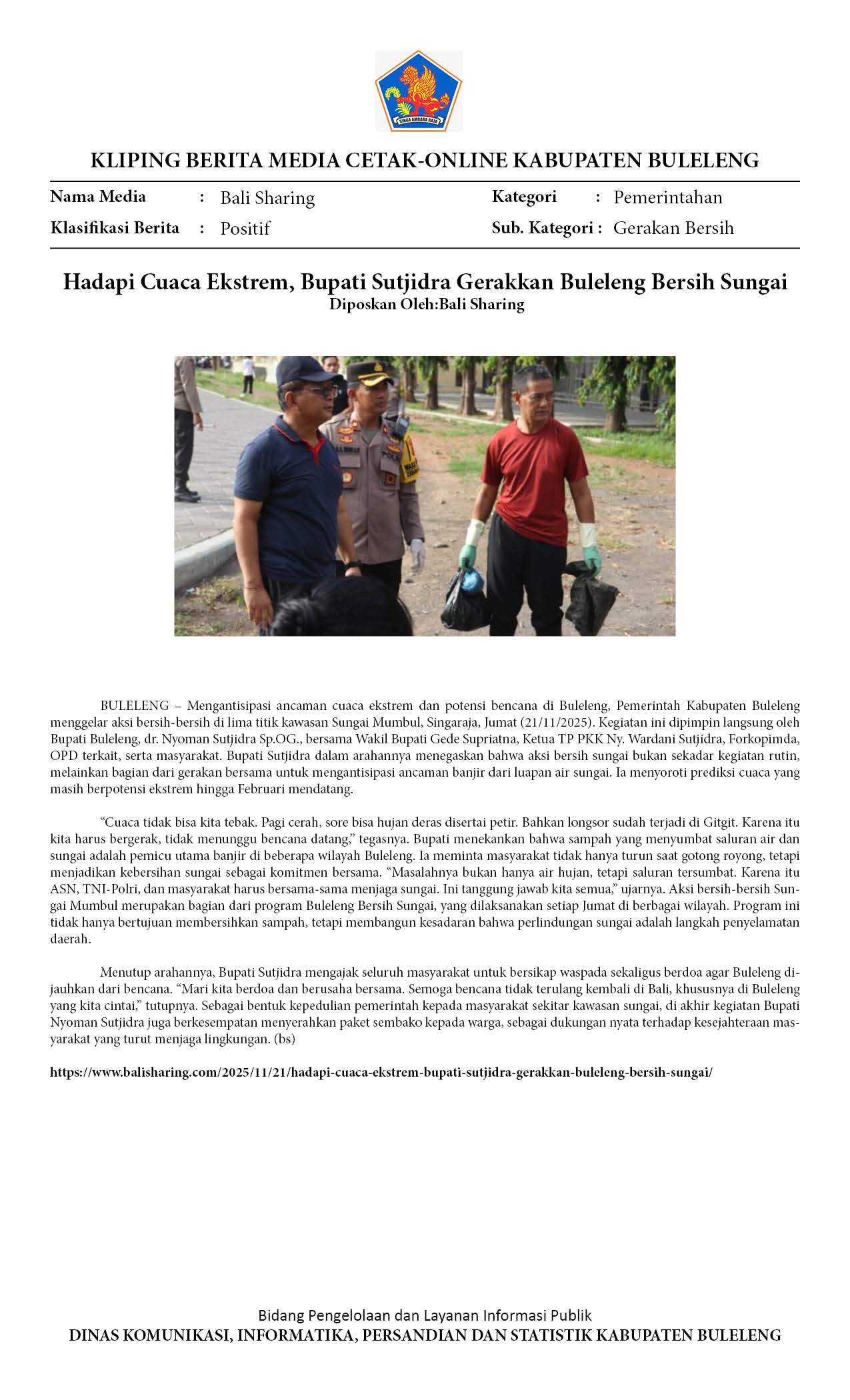Hadapi Cuaca Ekstrem, Bupati Sutjidra Gerakkan Buleleng Bersih Sungai
