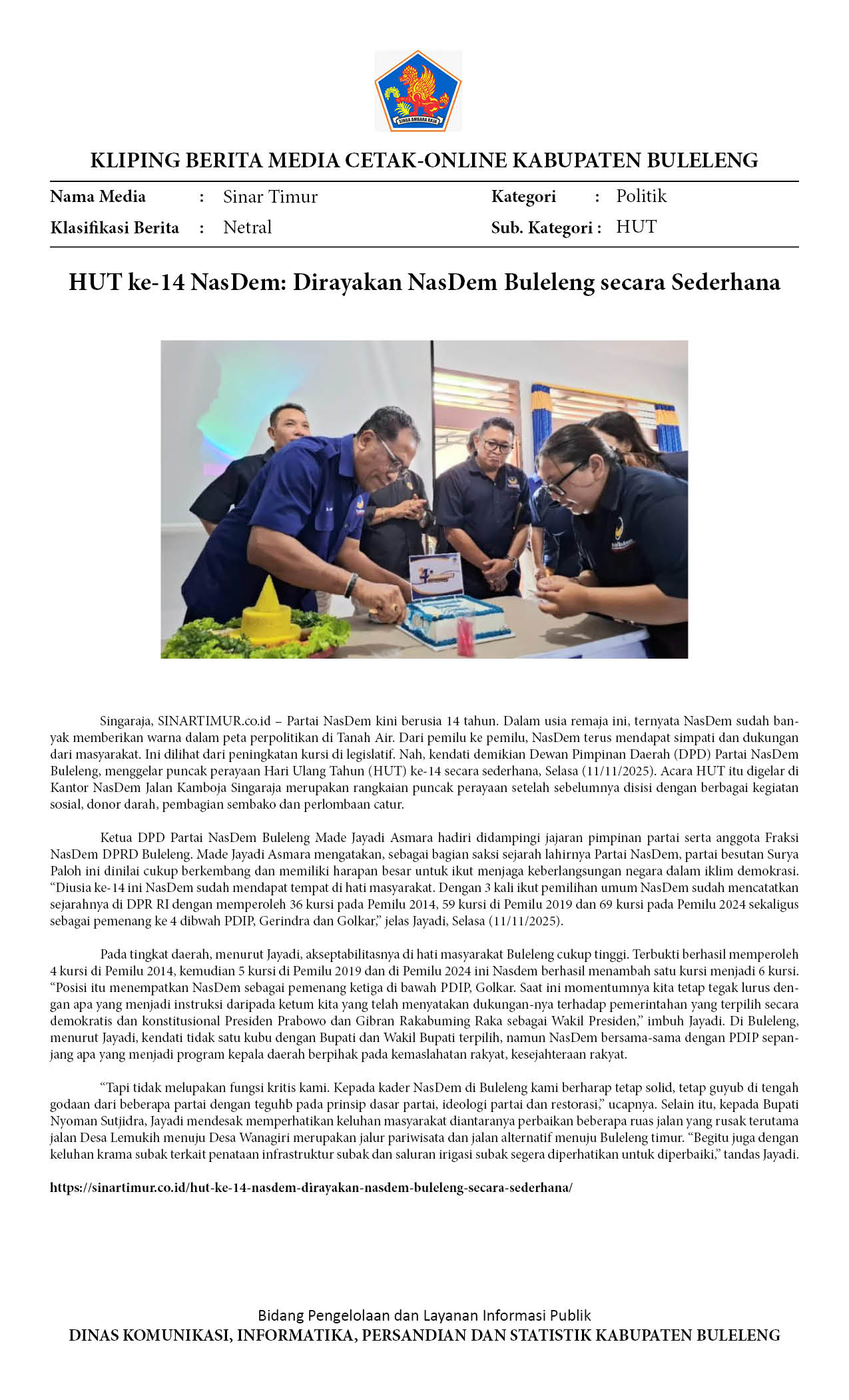 HUT ke-14 NasDem: Dirayakan NasDem Buleleng secara Sederhana