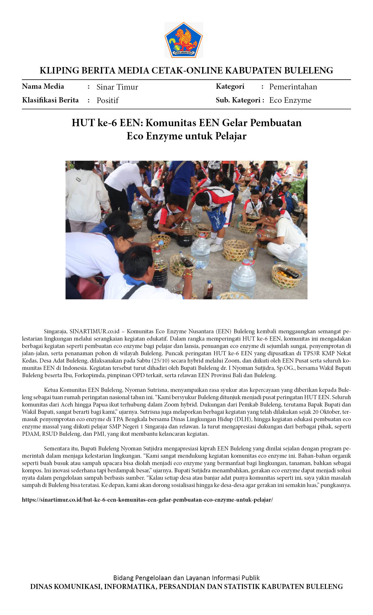 HUT KE-6 EEN: KOMUNITAS EEN GELAR PEMBUATAN ECO ENZYME UNTUK PELAJAR