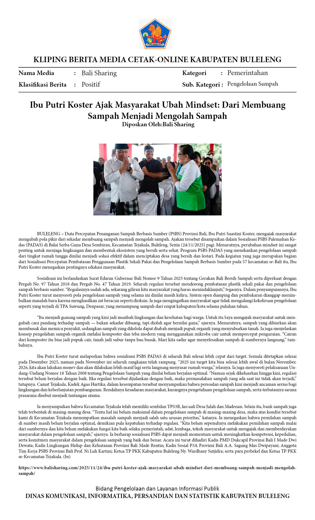 Ibu Putri Koster Ajak Masyarakat Ubah Mindset: Dari Membuang Sampah Menjadi Mengolah Sampah